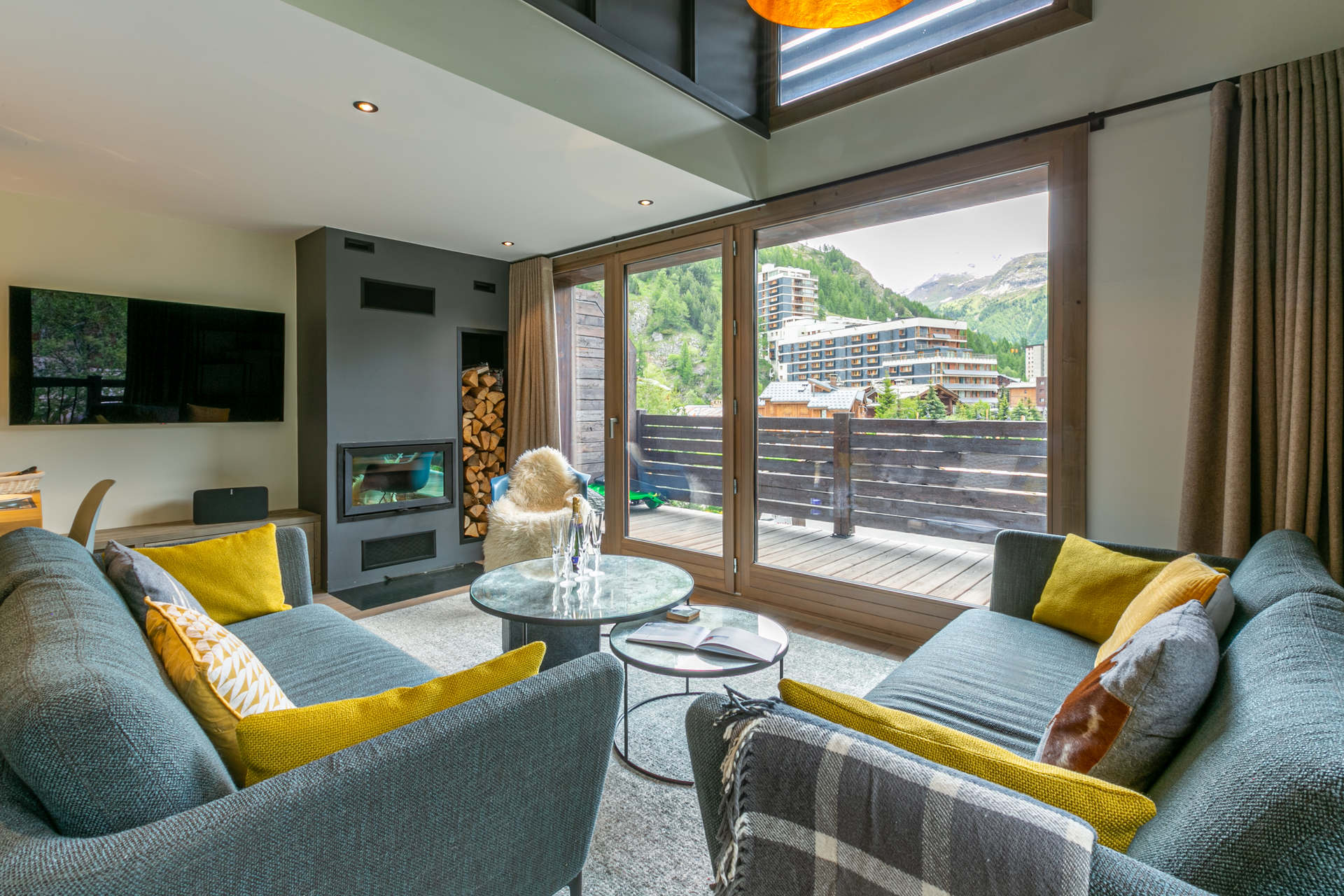 Grand salon avec Cheminée et Télévision - Apple TV - 2 Bornes Sonos