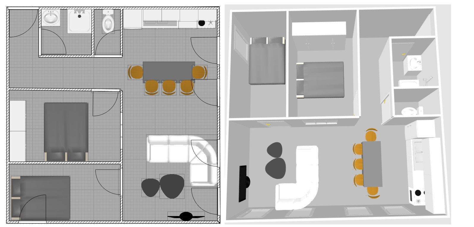 3 pièces de 44 m2 pouvant accueillir 4 personnes