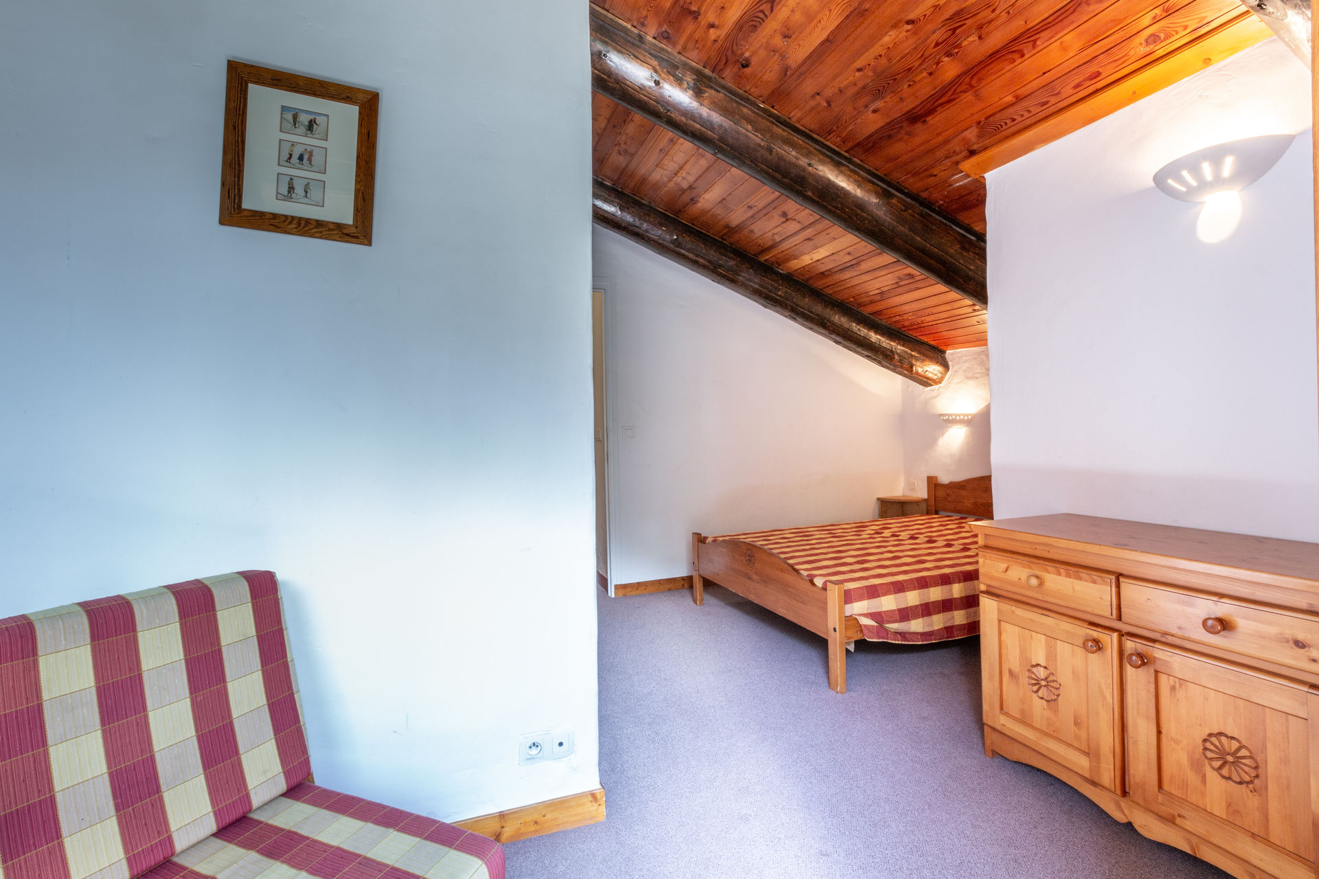 Tête de lit légèrement en sous-pente: 1 lit double 140x190 cm