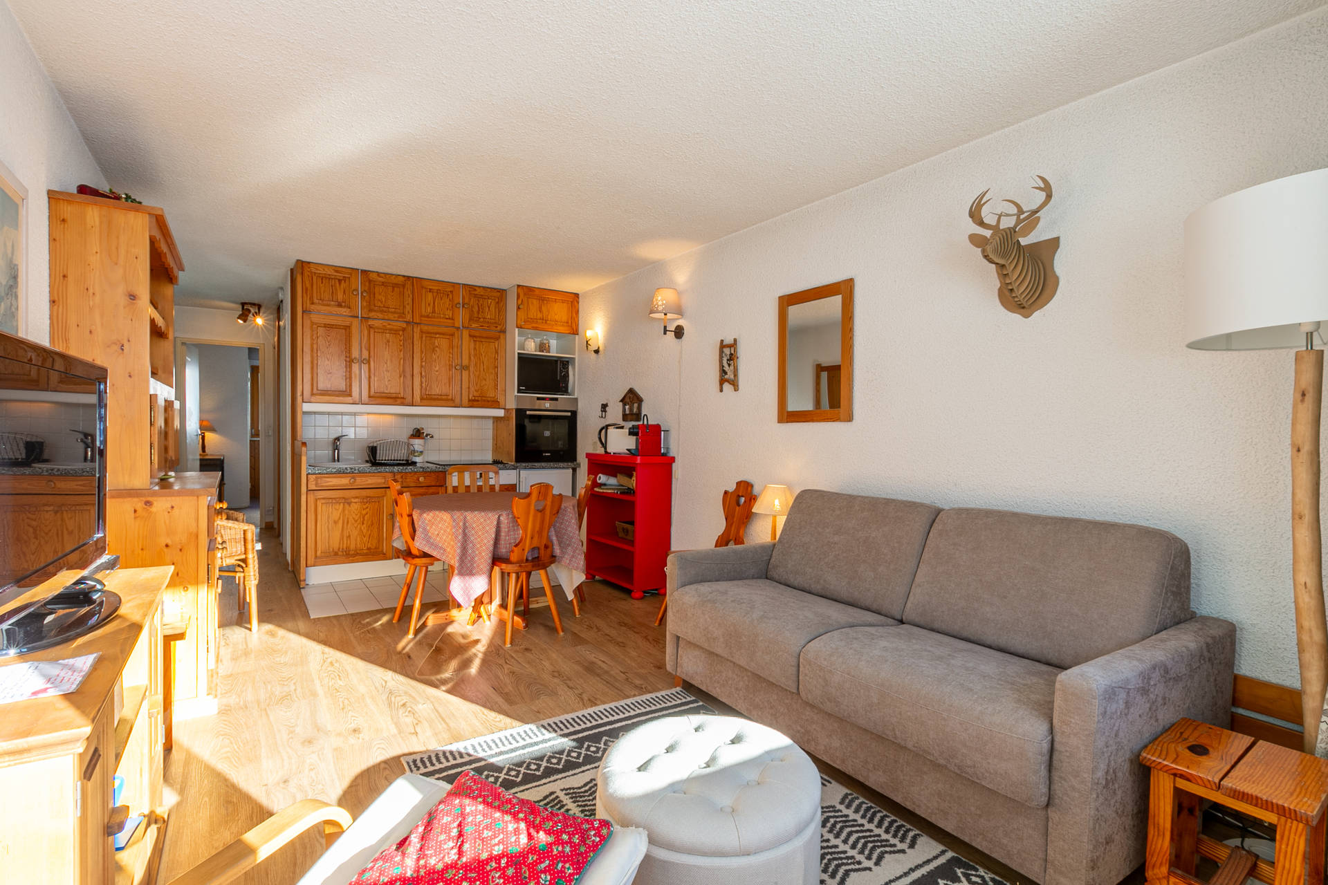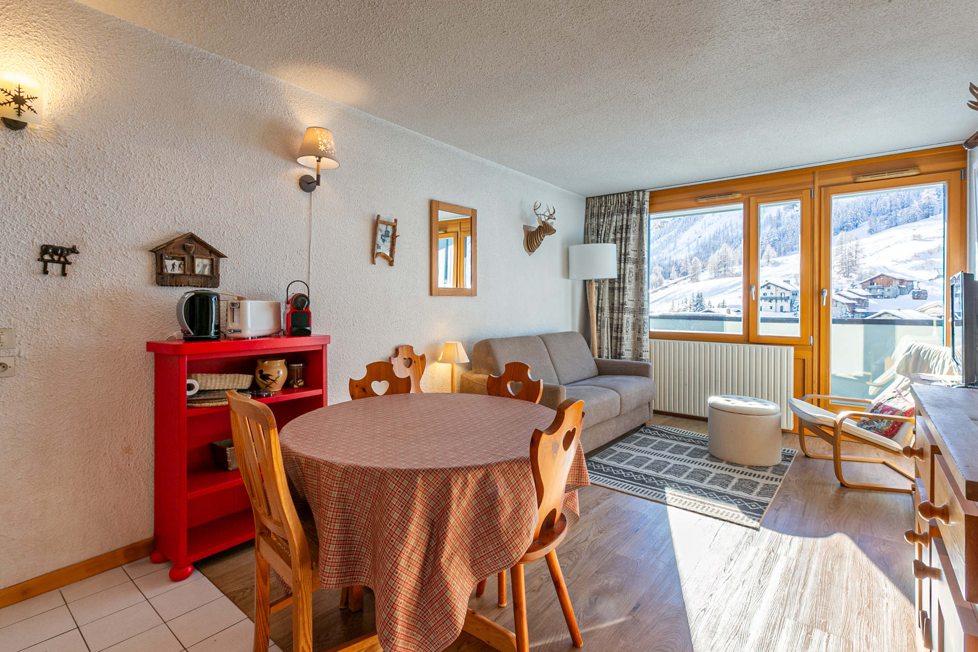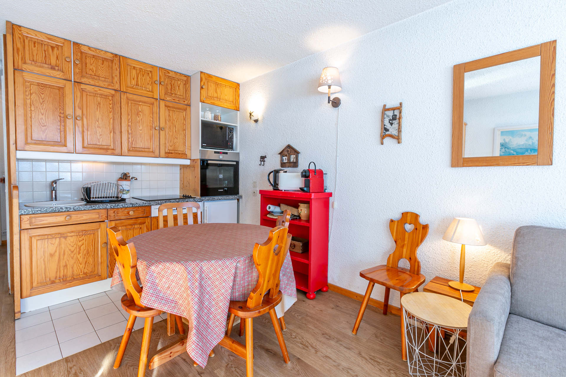 Appartement 3 pièces dans le secteur de la Daille de 43m2 pouvant accueillir 5 personnes. Au 8ème étage (7° étage avec ascenseur puis dernier étage par escaliers) dans la cage A de la résidence avec un balcon exposé Sud. Très beau panorama sur les montagnes environnantes.