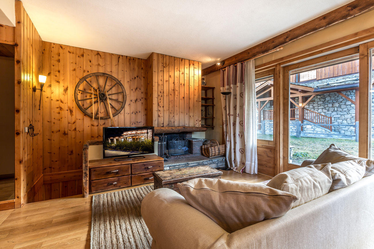 Séjour avec cheminée (bois non fourni, possible sur demande) et télévision