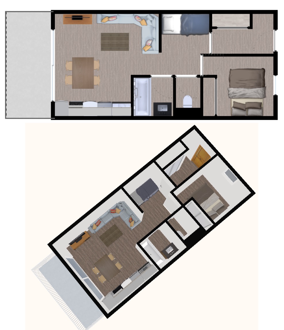 2 pièces de 35m2 pouvant accueillir 4 personnes.