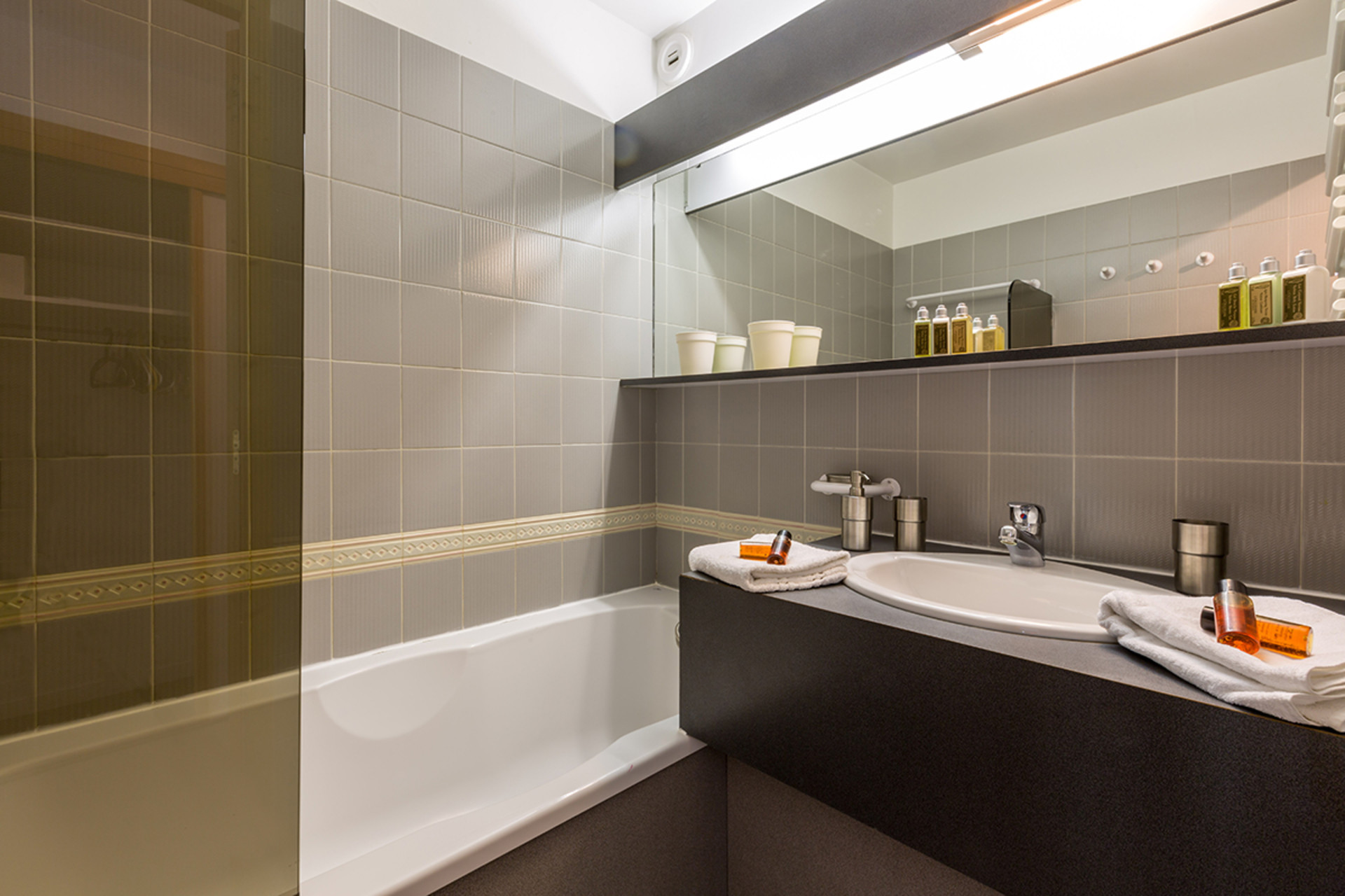 Salle de bain attenante avec baignoire
