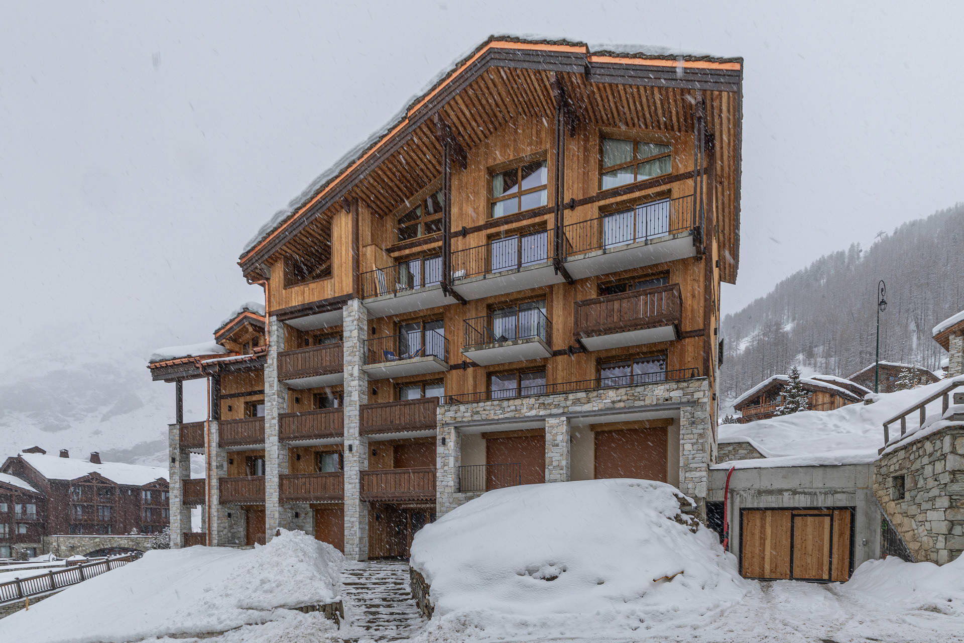 Copropriété aux pieds des pistes de Solaise. Départ et retour skis aux pieds à partir du 2ème étage de la résidence sur la piste « M ».