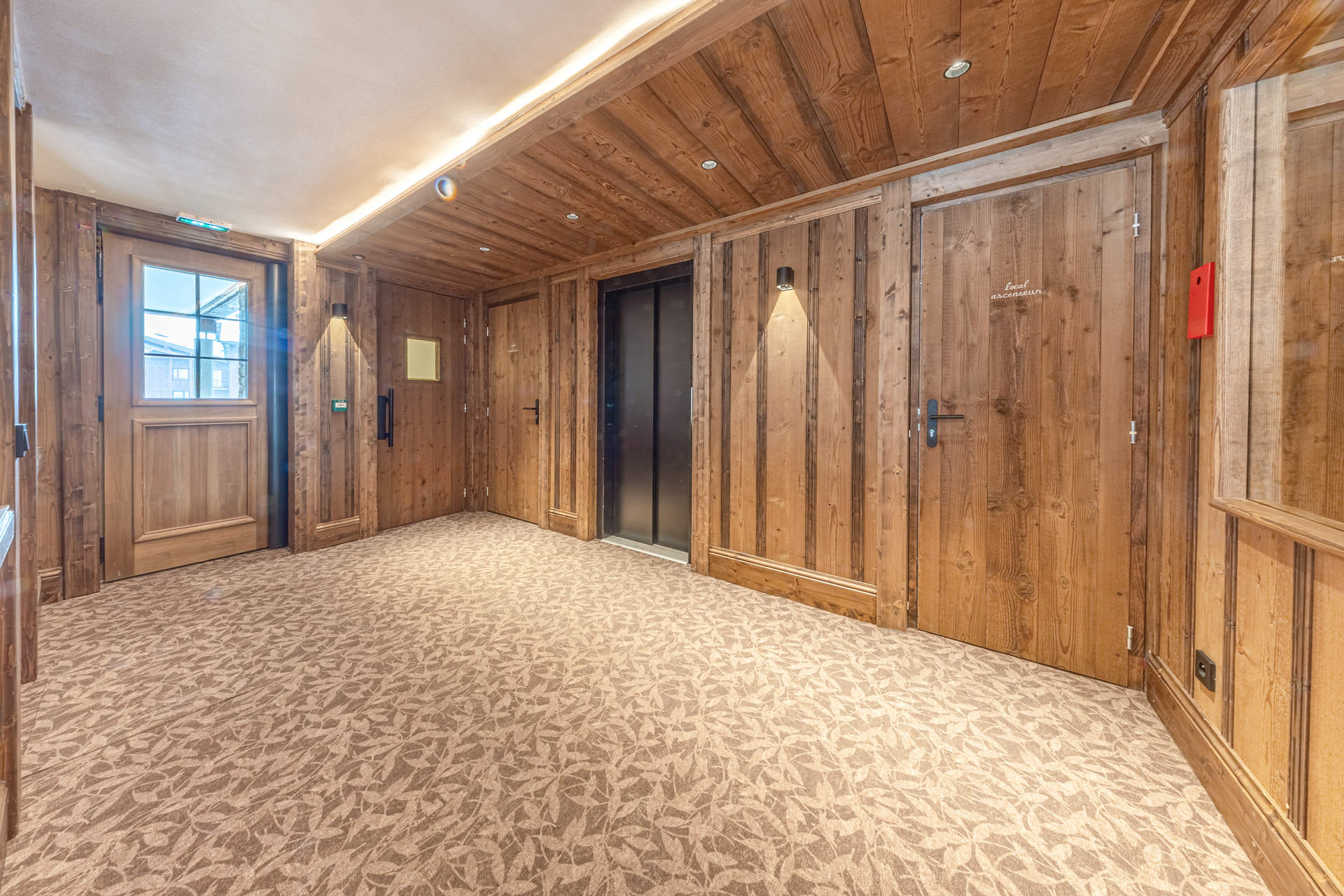 Local à skis au rez-de-chaussée du bâtiment.