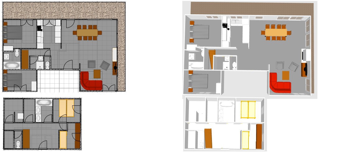5 pièces souplex de 120m2 pouvant accueillir 8 personnes. Au rez-de-chaussée de la résidence, avec une grande terrasse exposée Sud/Ouest