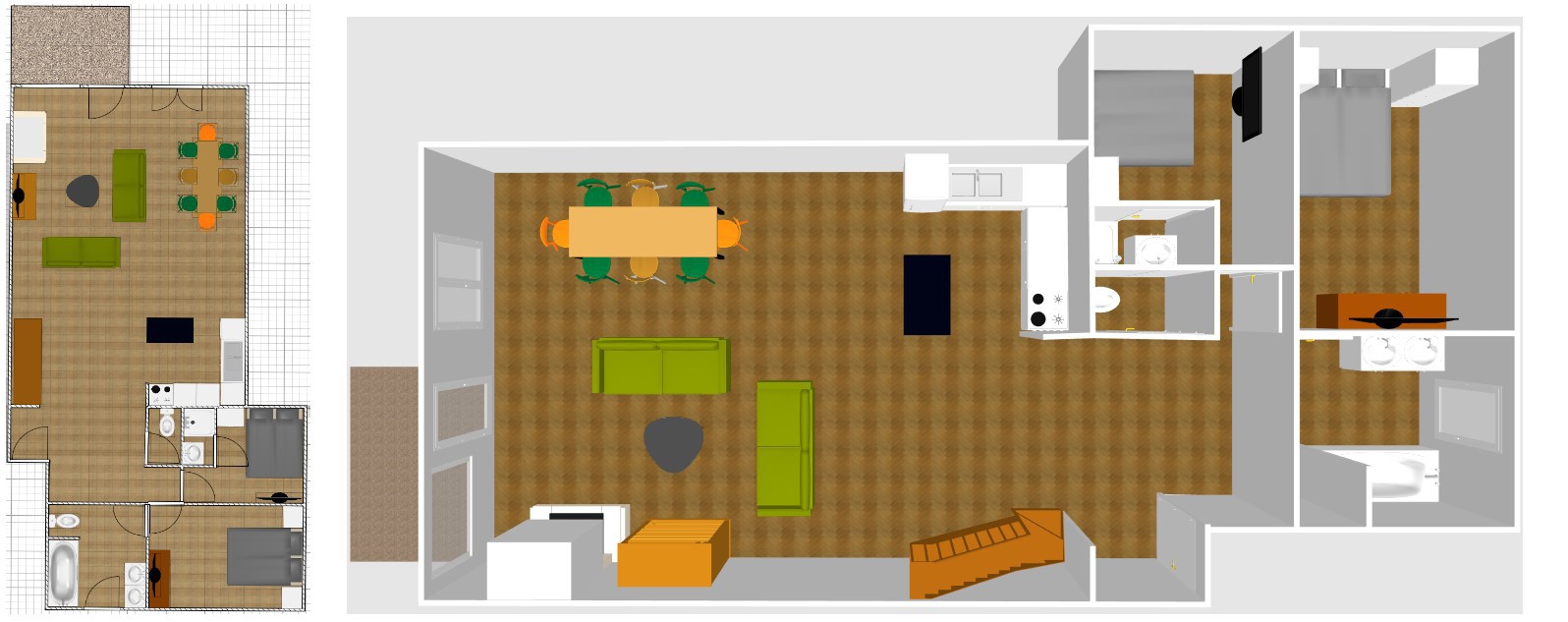 5 Pièces duplex de 87 m2 pouvant accueillir 8 personnes.