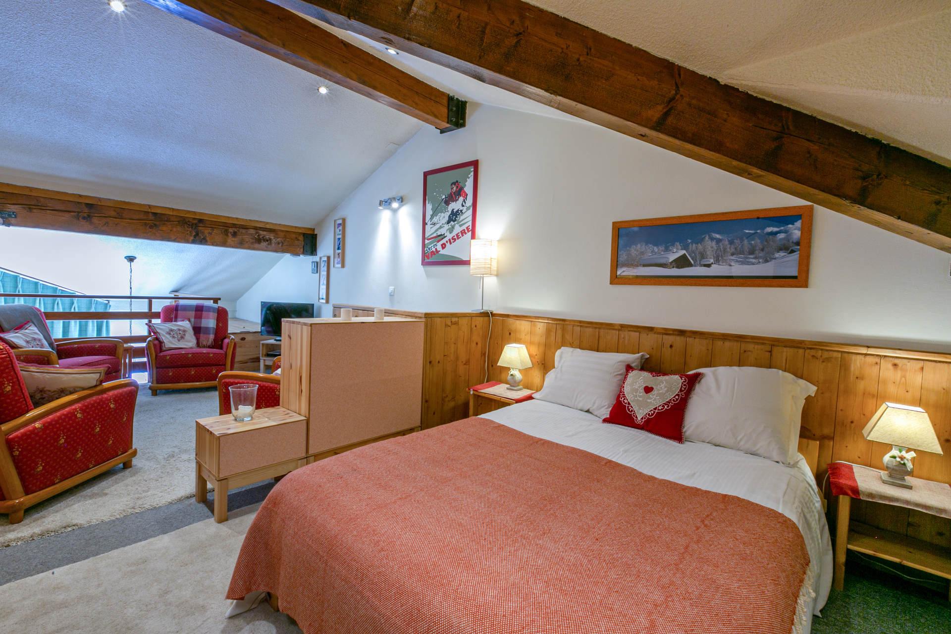 Espace nuit avec lit double en 140x195 cm