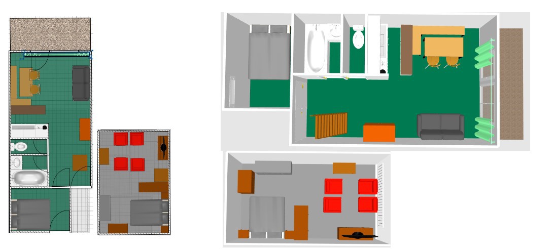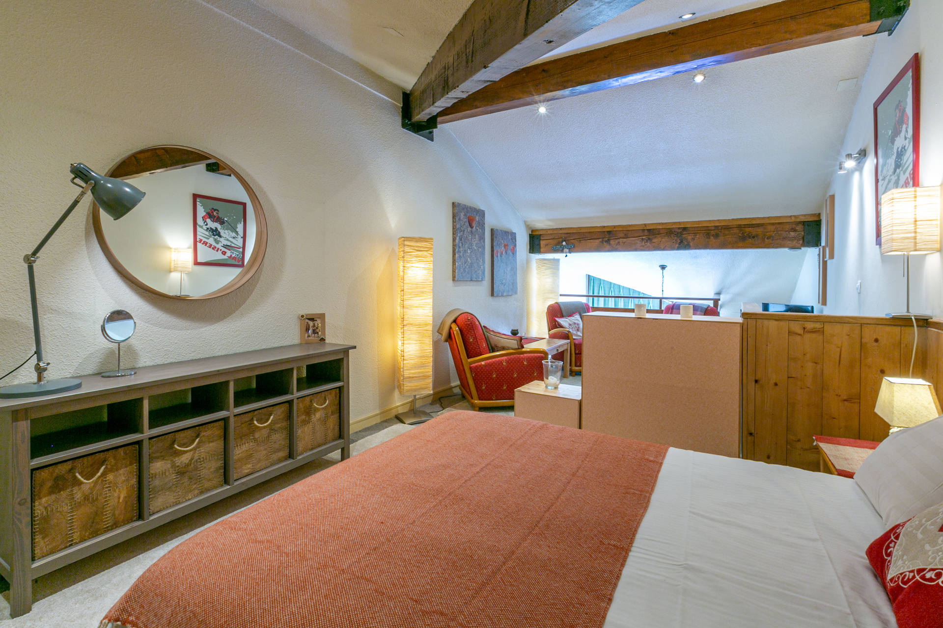 Mezzanine ouverte (partiellement <1.80m) - attention escaliers raides