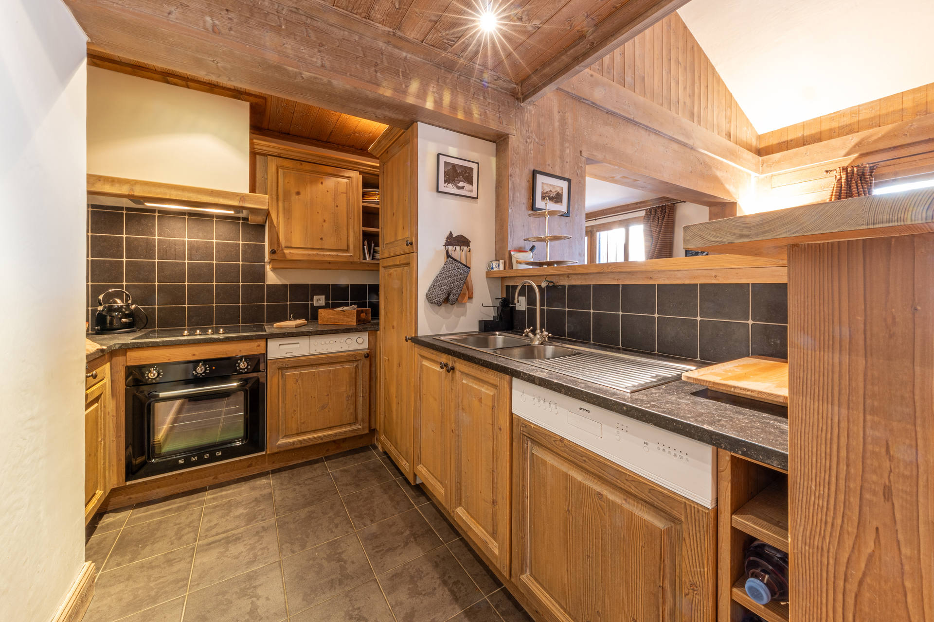 Equipée d'un lave-vaisselle, four, plaque vitrocéramique, micro-ondes, lave-linge, hotte aspirante, réfrigérateur