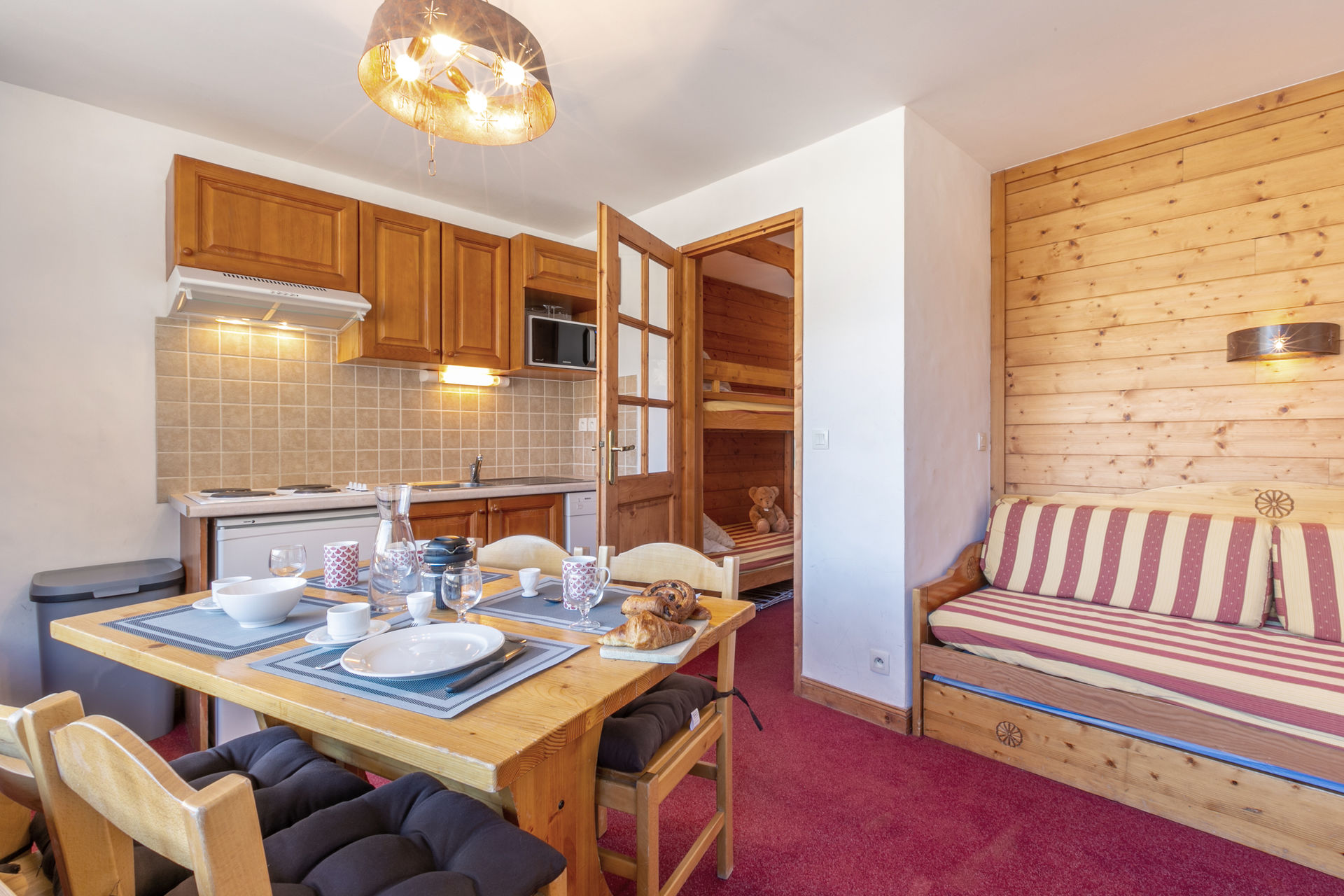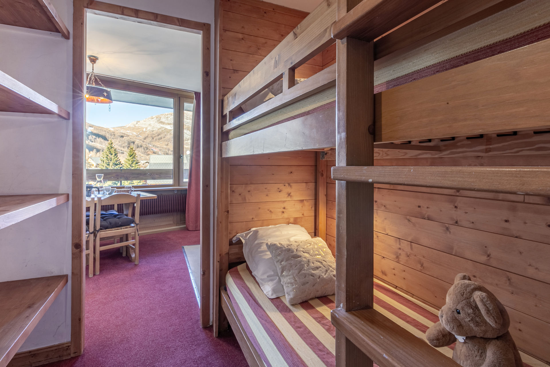 Dans l'entrée avec 2 lits superposés en 80x190 cm et séparée du séjour par une porte.