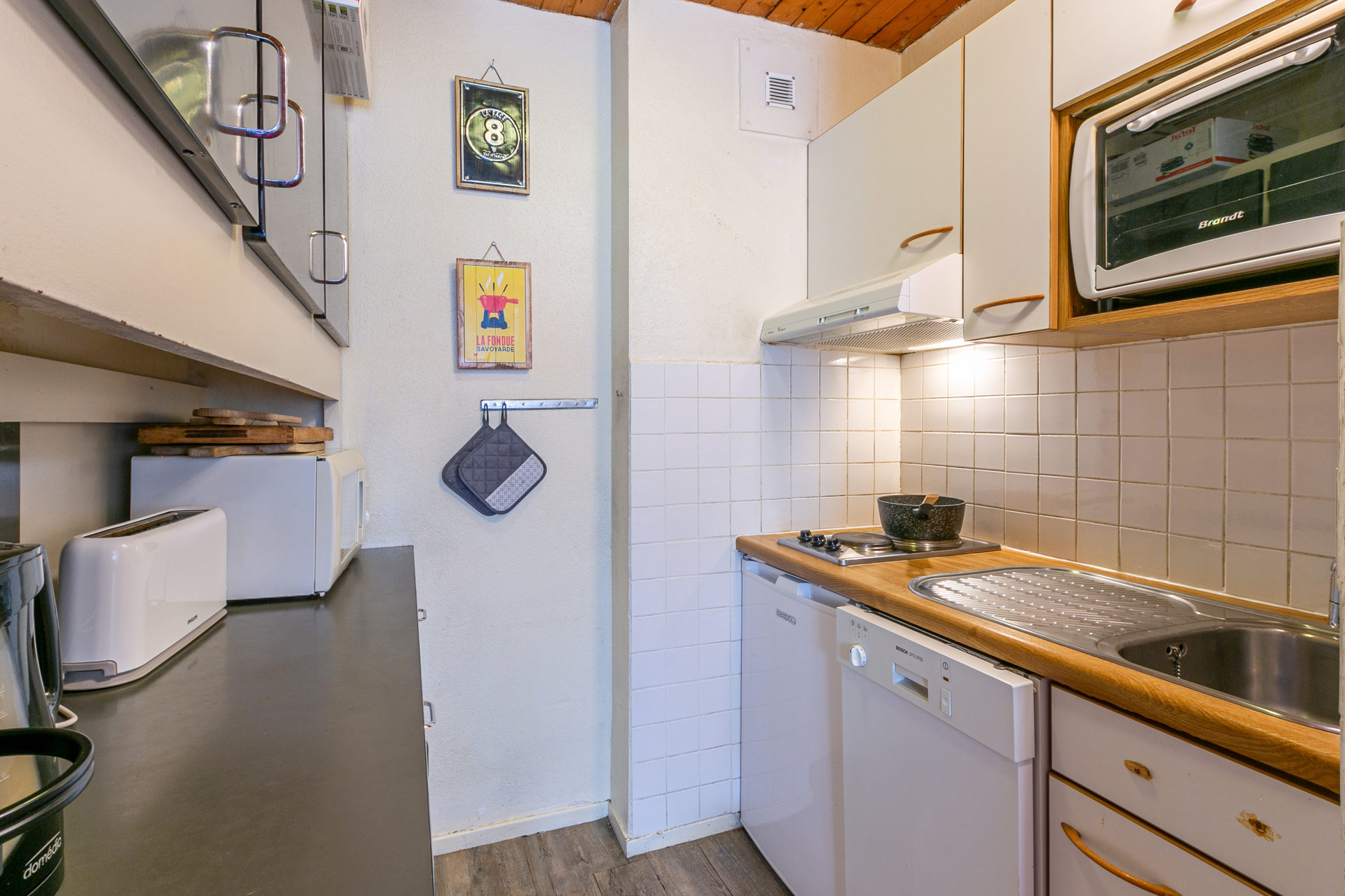 Equipée d'un four, four micro-ondes, hote aspirante, réfrigérateur et congélateur, plaque induction 2 feux et lave-vaisselle.