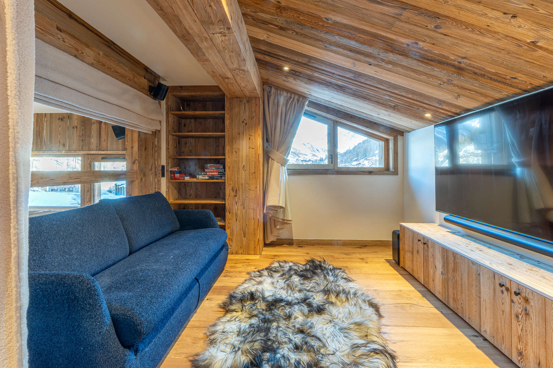 Au 4° étage de la résidence, dans un style bois avec balcon exposé Sud/Ouest et très belle vue sur le village et les montagnes