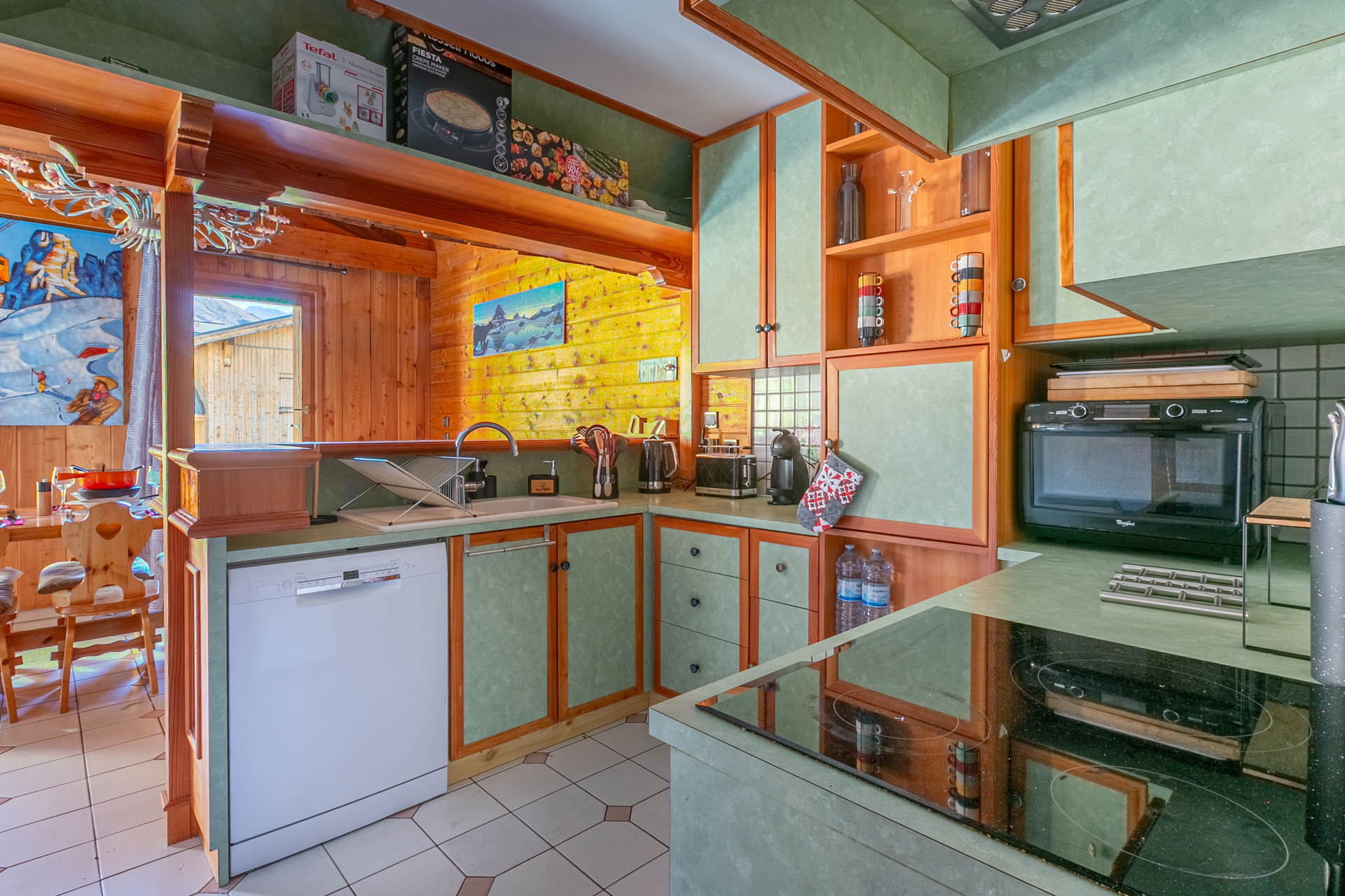 Equipée d'un four avec micro-ondes, lave-vaisselle, plaque vitrocéramique, réfrigérateur et compartment congélation, hotte aspirante