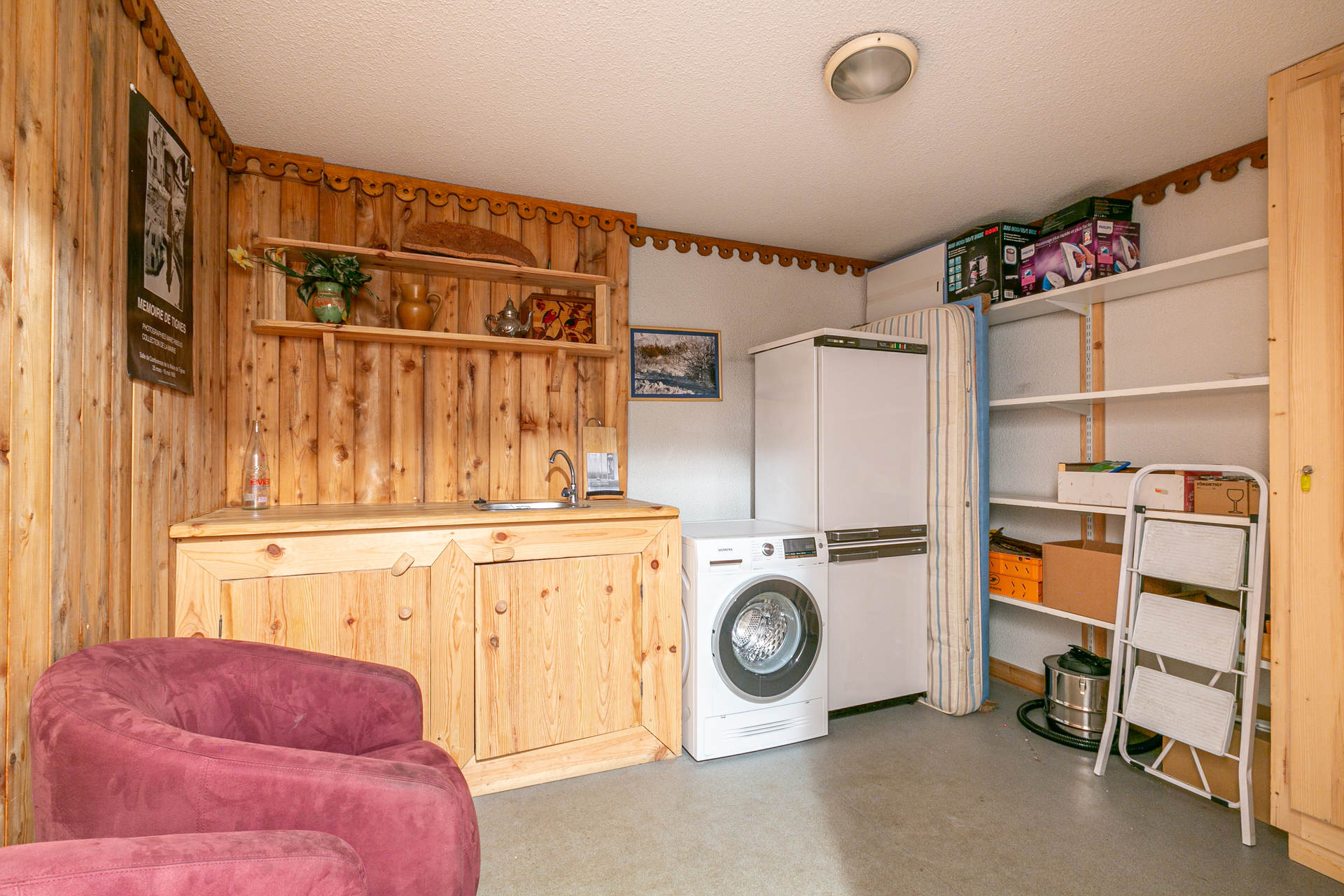 Cave premier étage droit (niveau 2): Buanderie Lave linge séchant+ stockage des skis
