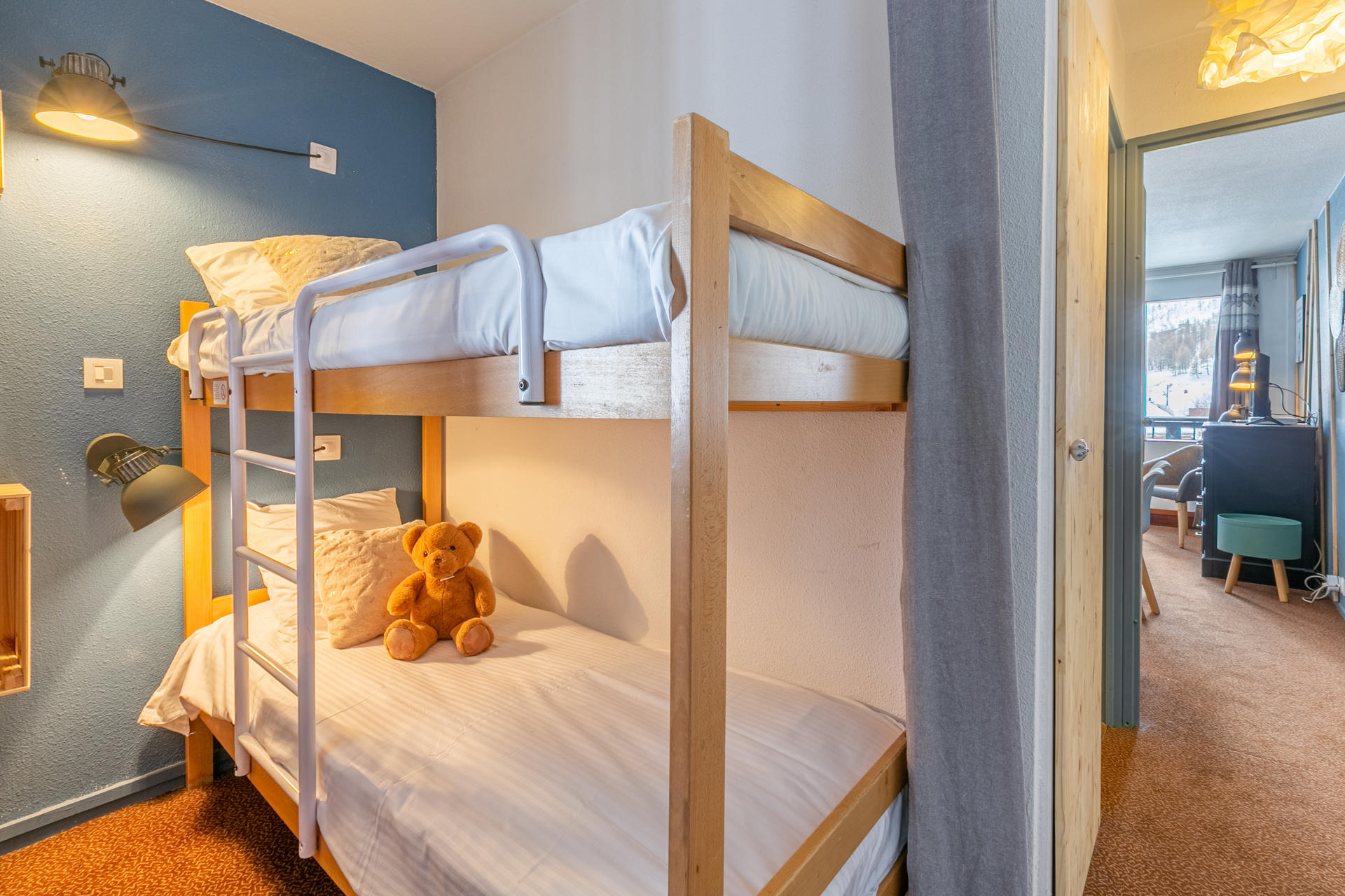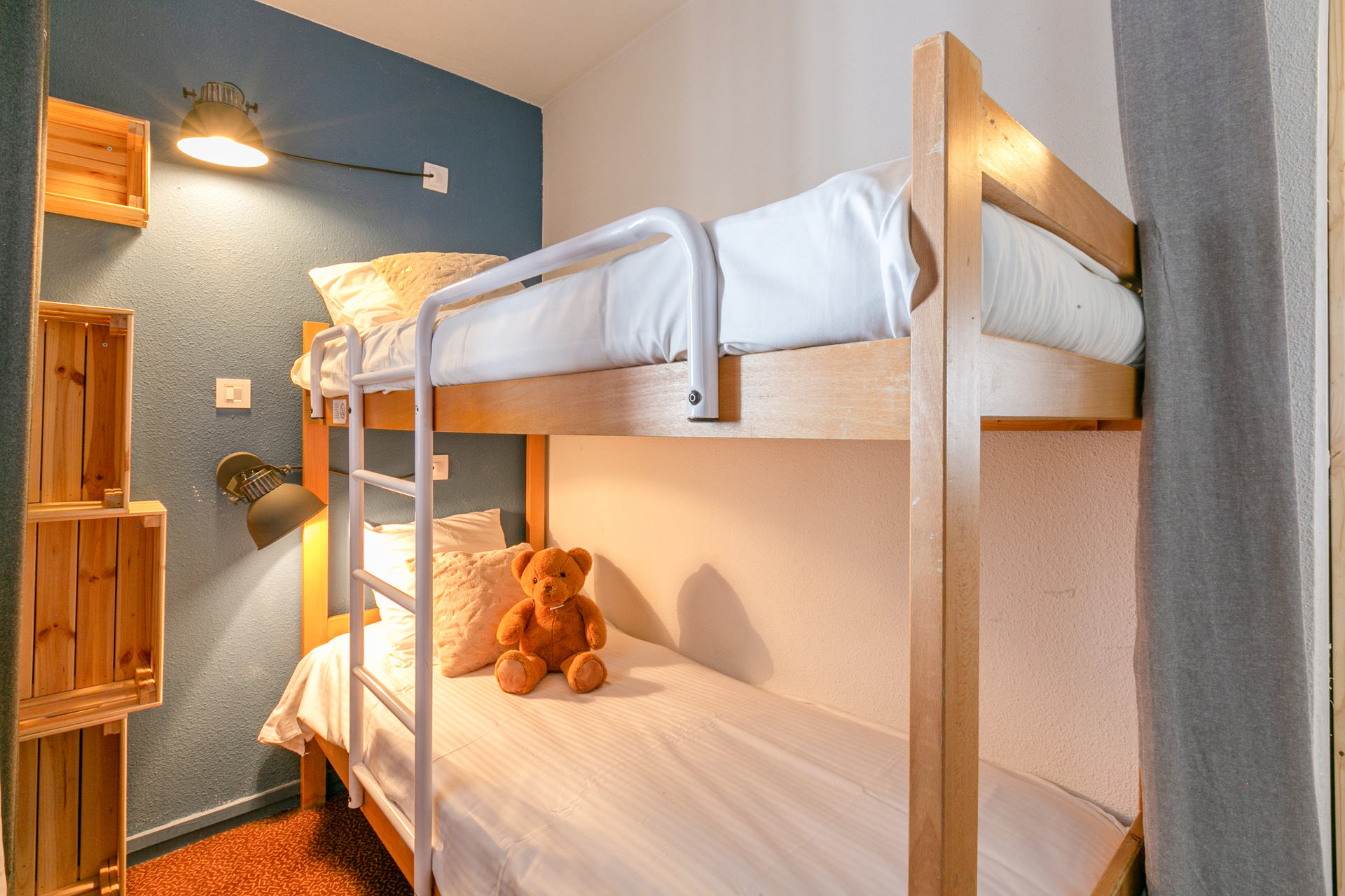 Alcôve avec 2 lits superposés 80x190 cm isolée par 2 rideaux