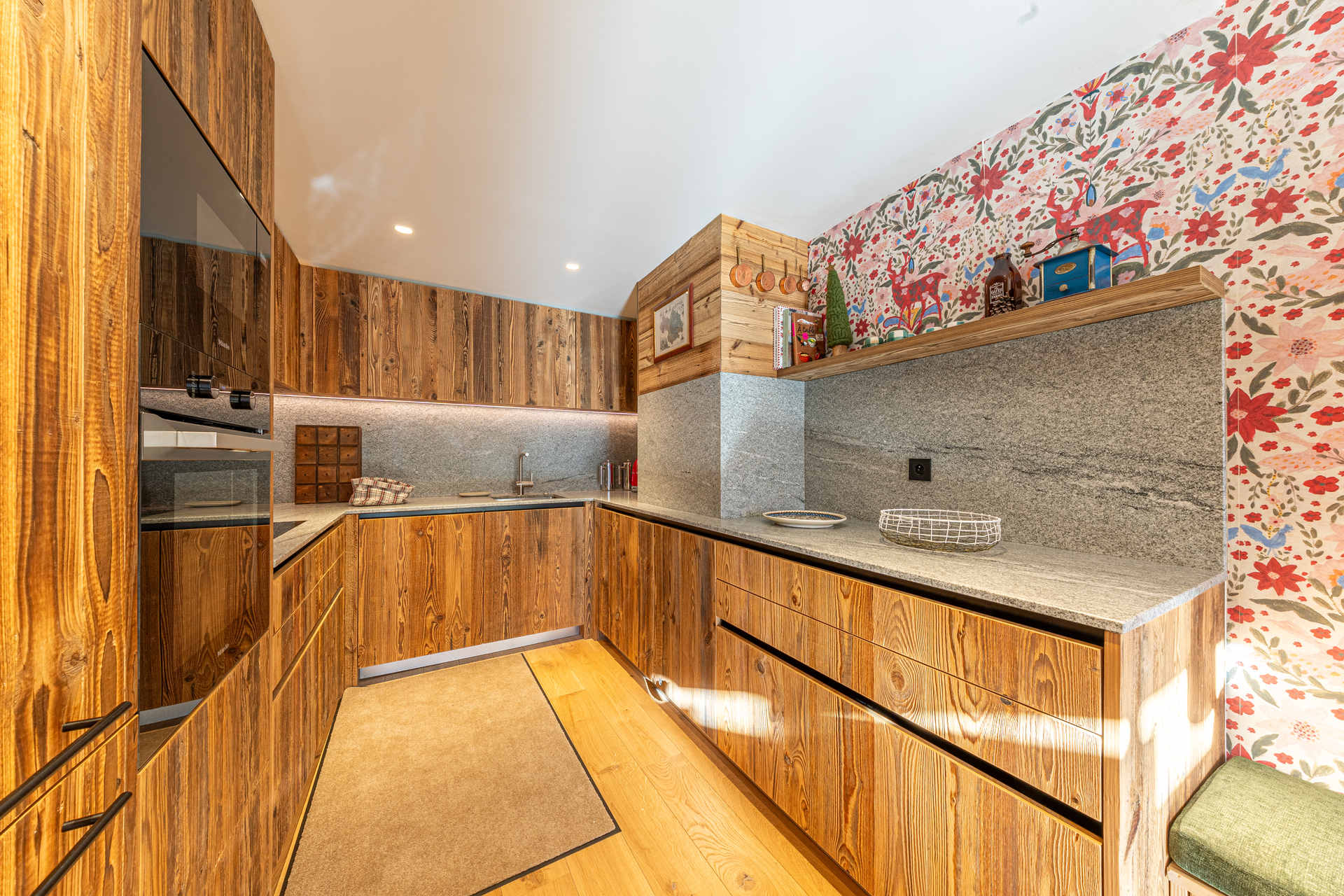 Equipée d'un lave-vaisselle, four, plaque à induction, hotte aspirante, four micro-ondes, réfrigérateur avec congélateur