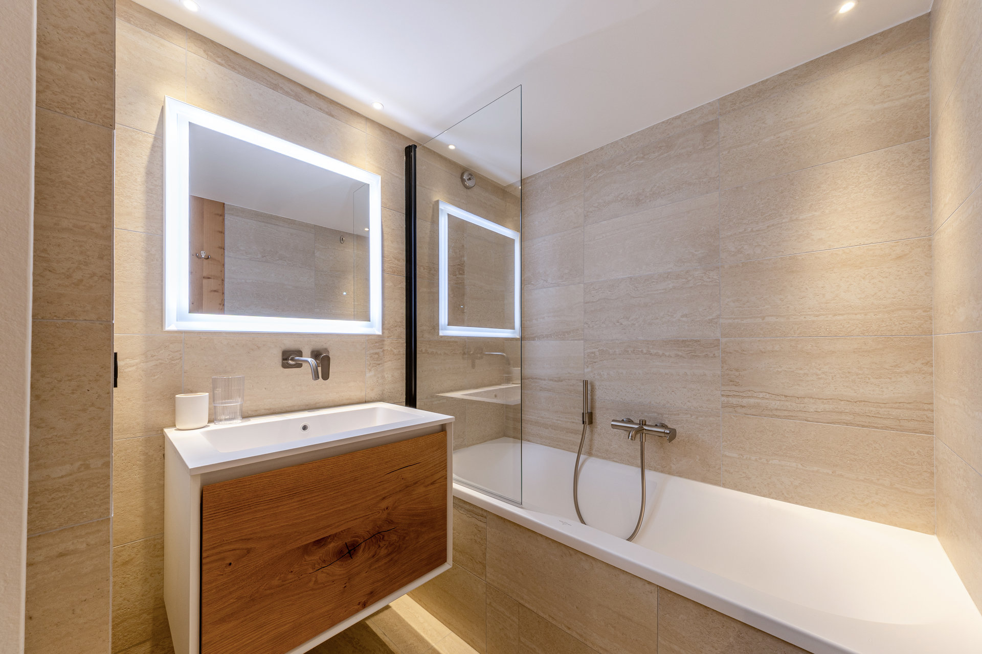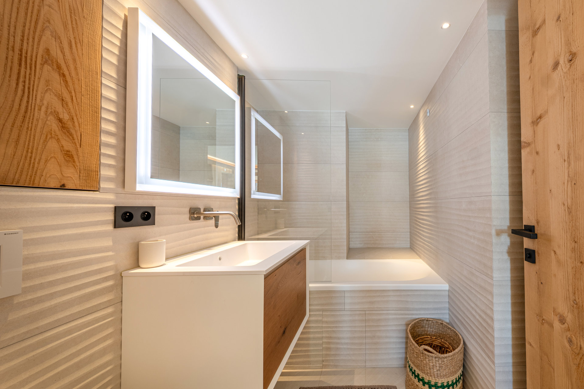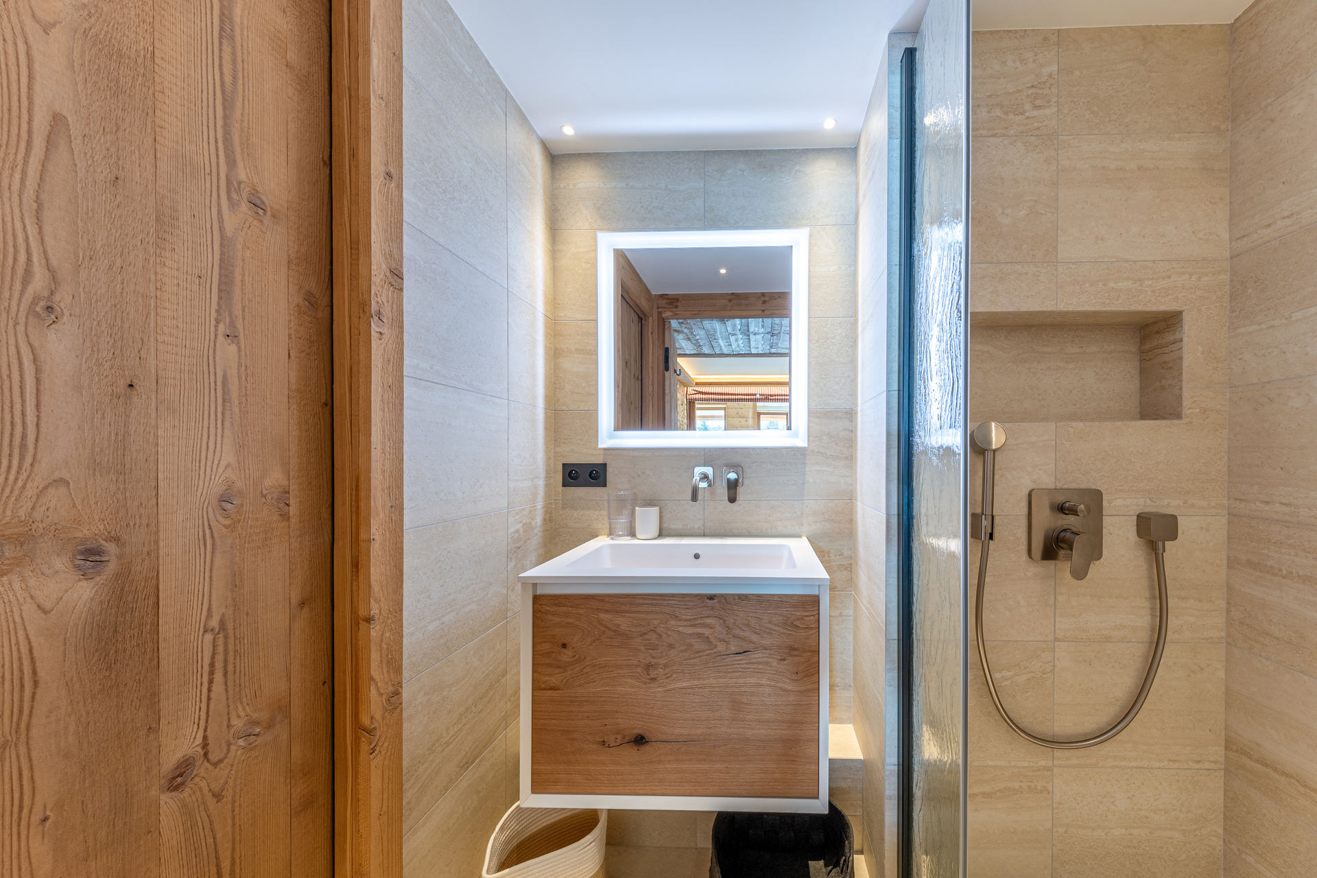 Résidence avec ascenseur, local à skis chauffé et chauffe-chaussures, local poubelle au rez-de-chaussée du bâtiment.