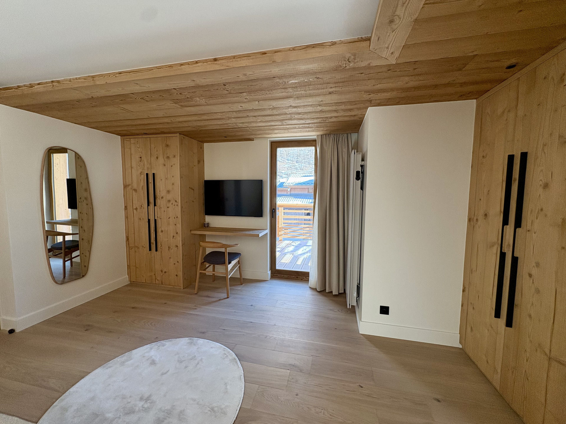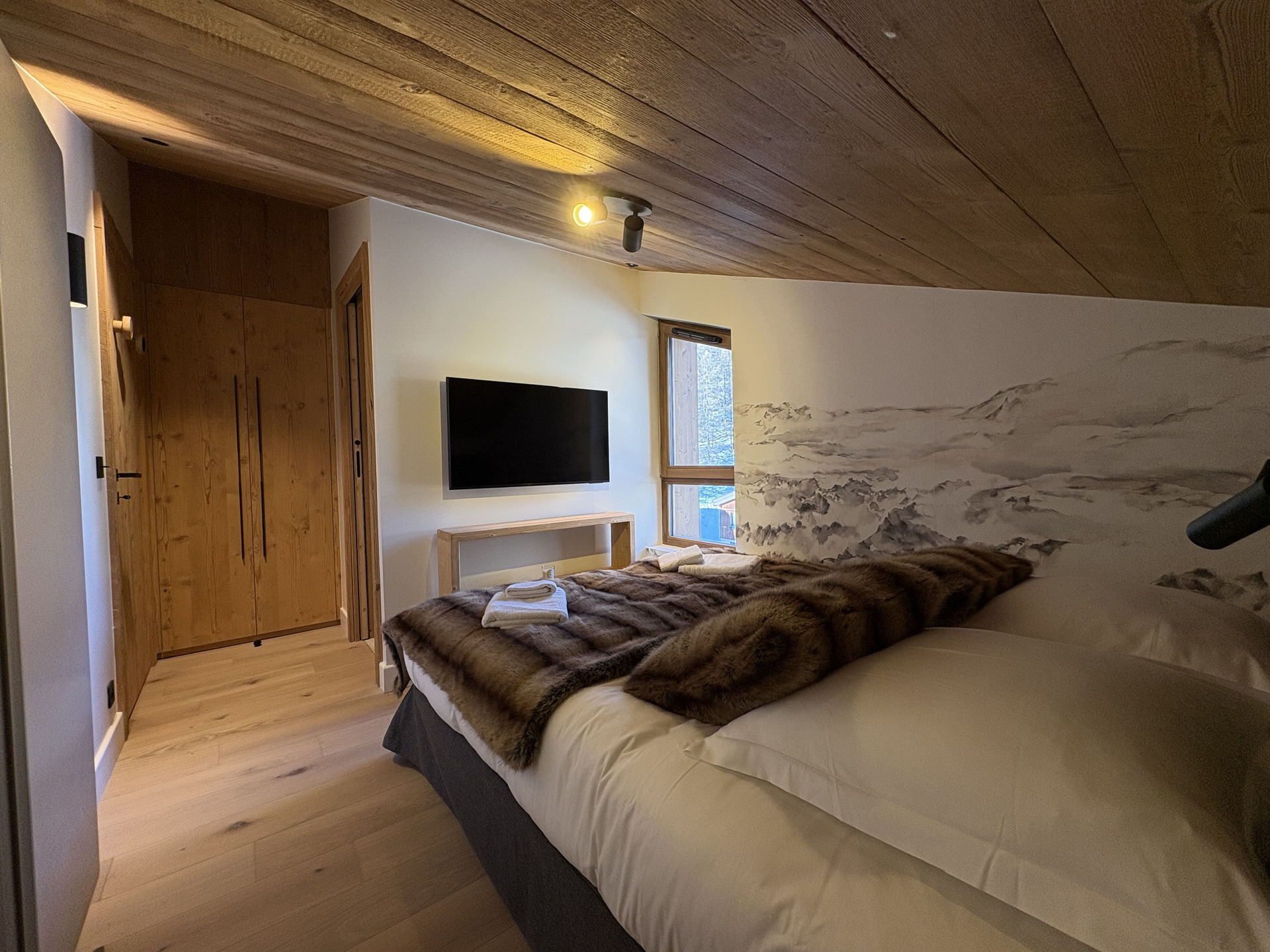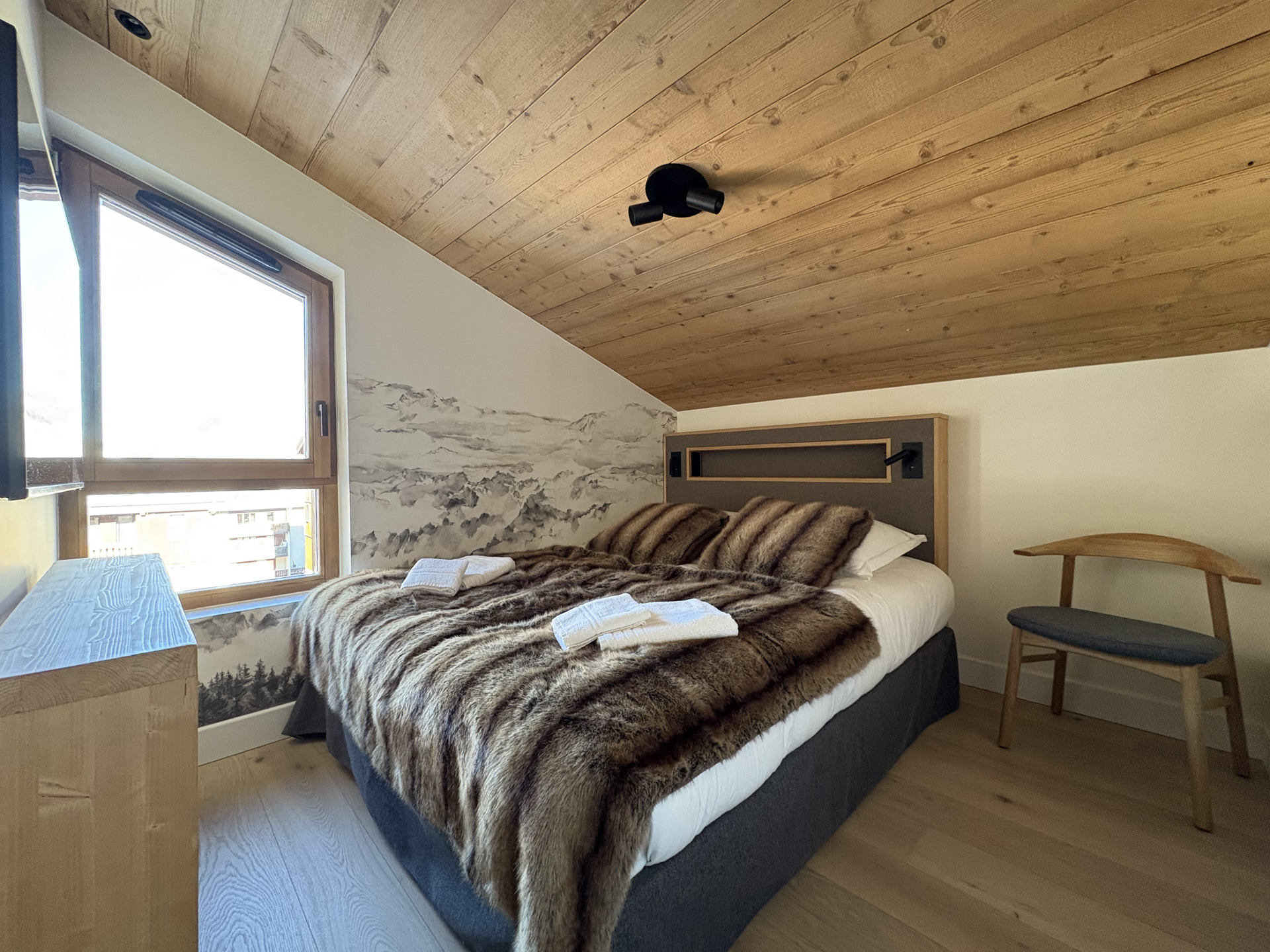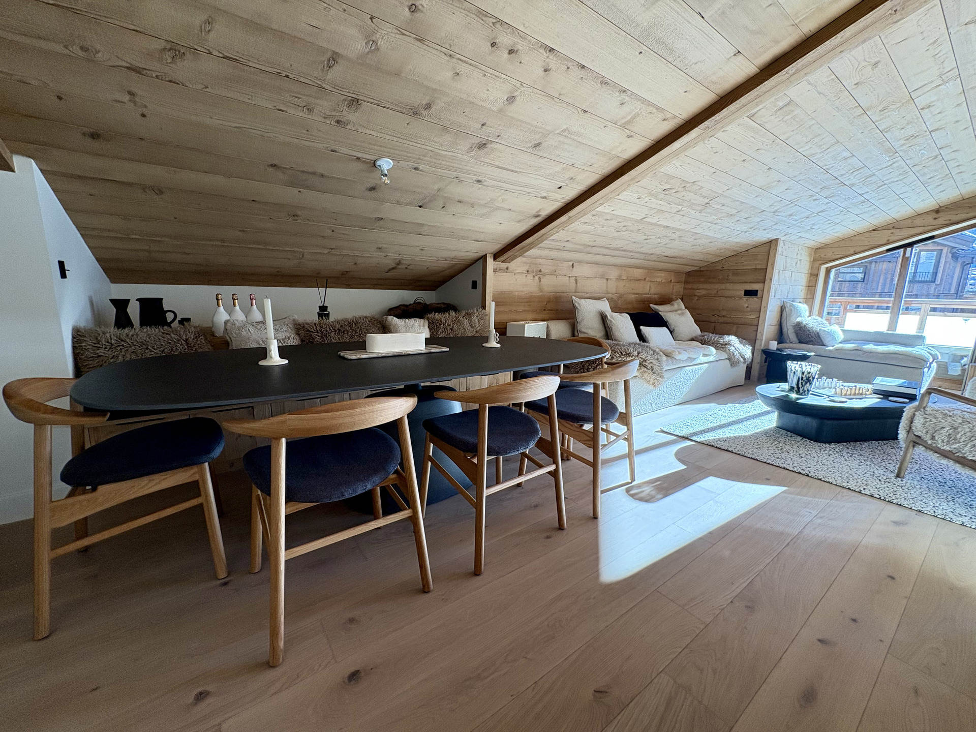 A 10 minutes à pieds des pistes, superbe penthouse ambiance chalet contemporain et chaleureux de 5 pièces en duplex de 129 m2 dont 13 m2 en sous-pente pouvant accueillir 8 personnes