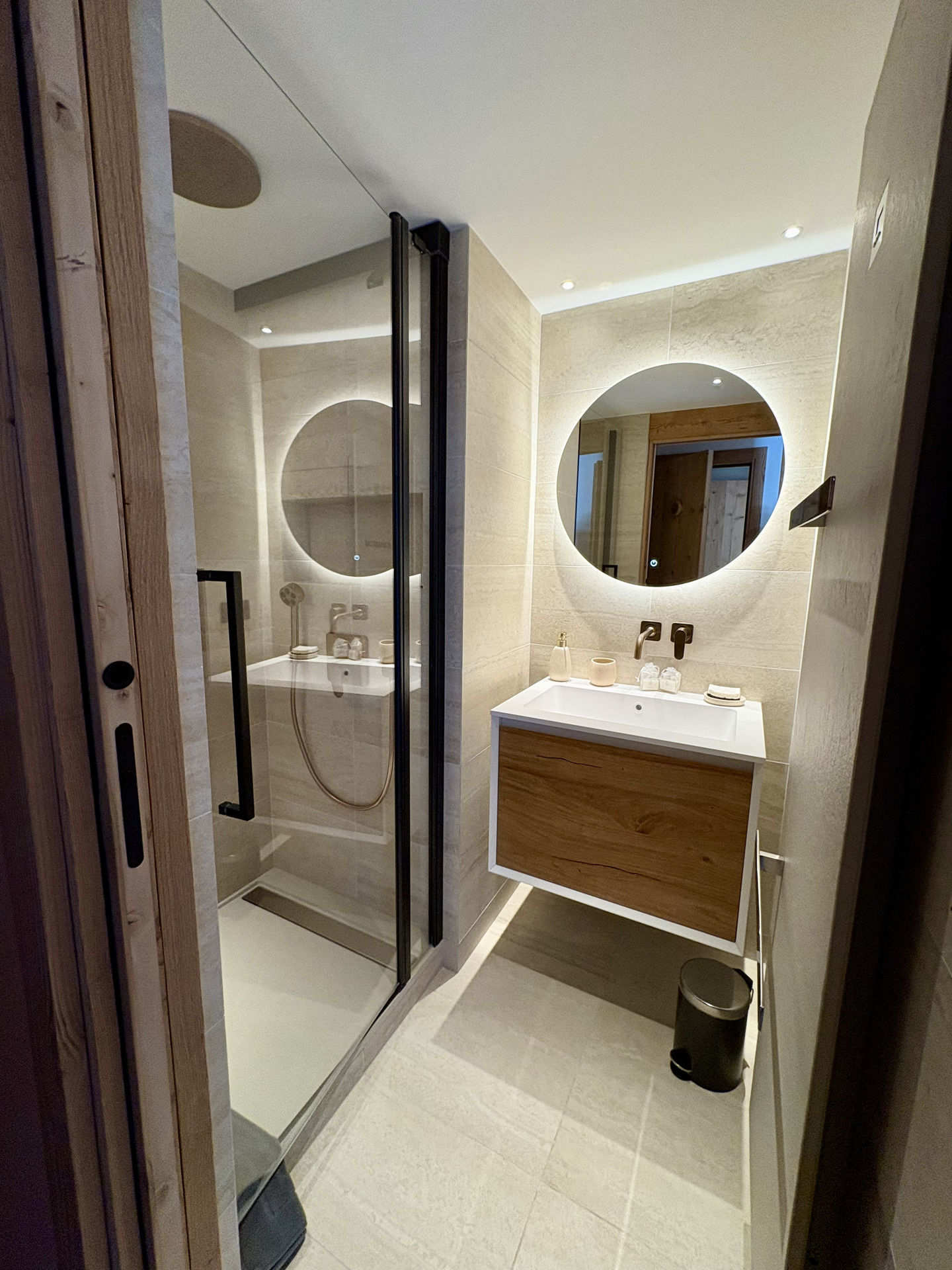 Résidence avec ascenseur, local à skis chauffé et chauffe-chaussures, local poubelle au rez-de-chaussée du bâtiment.