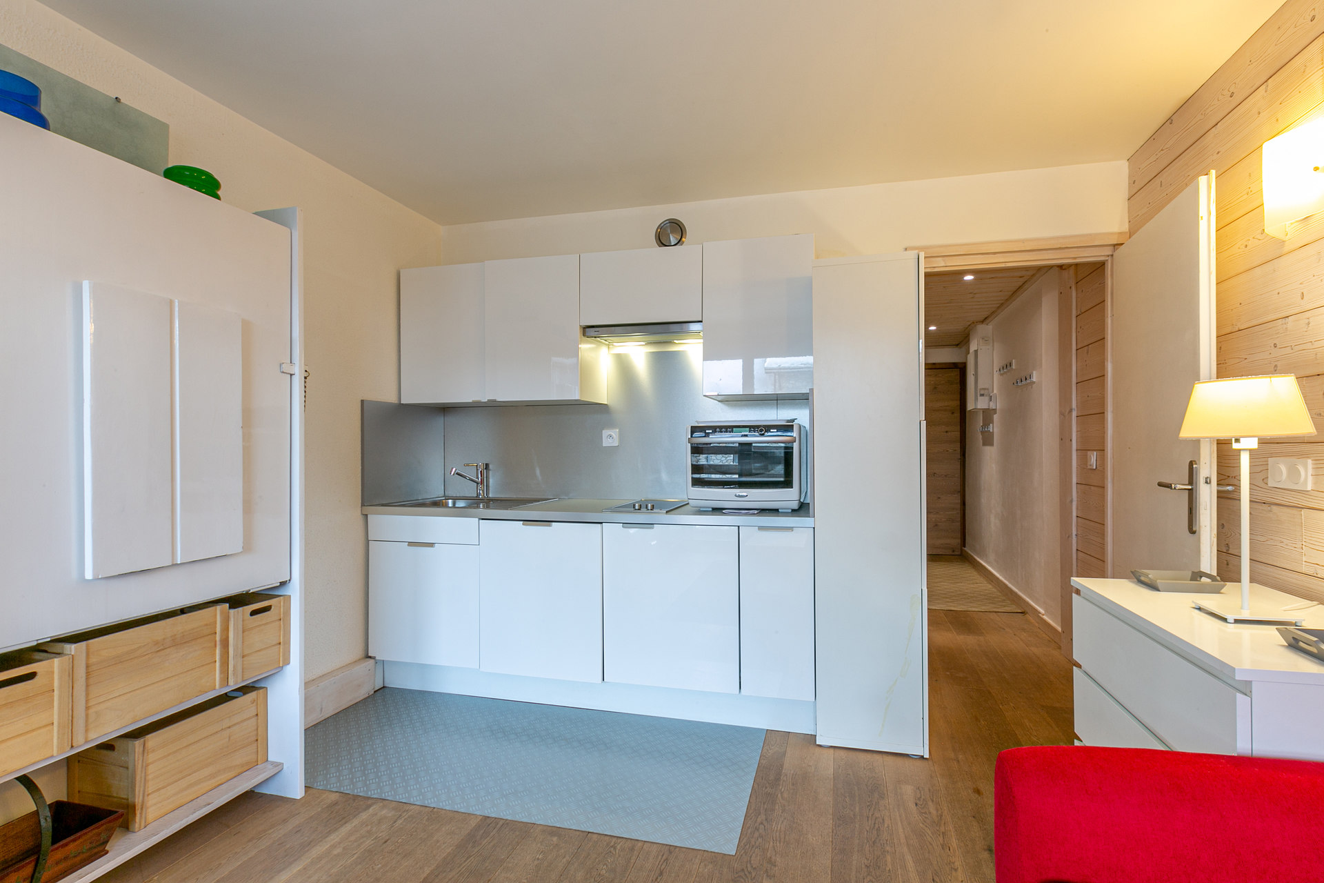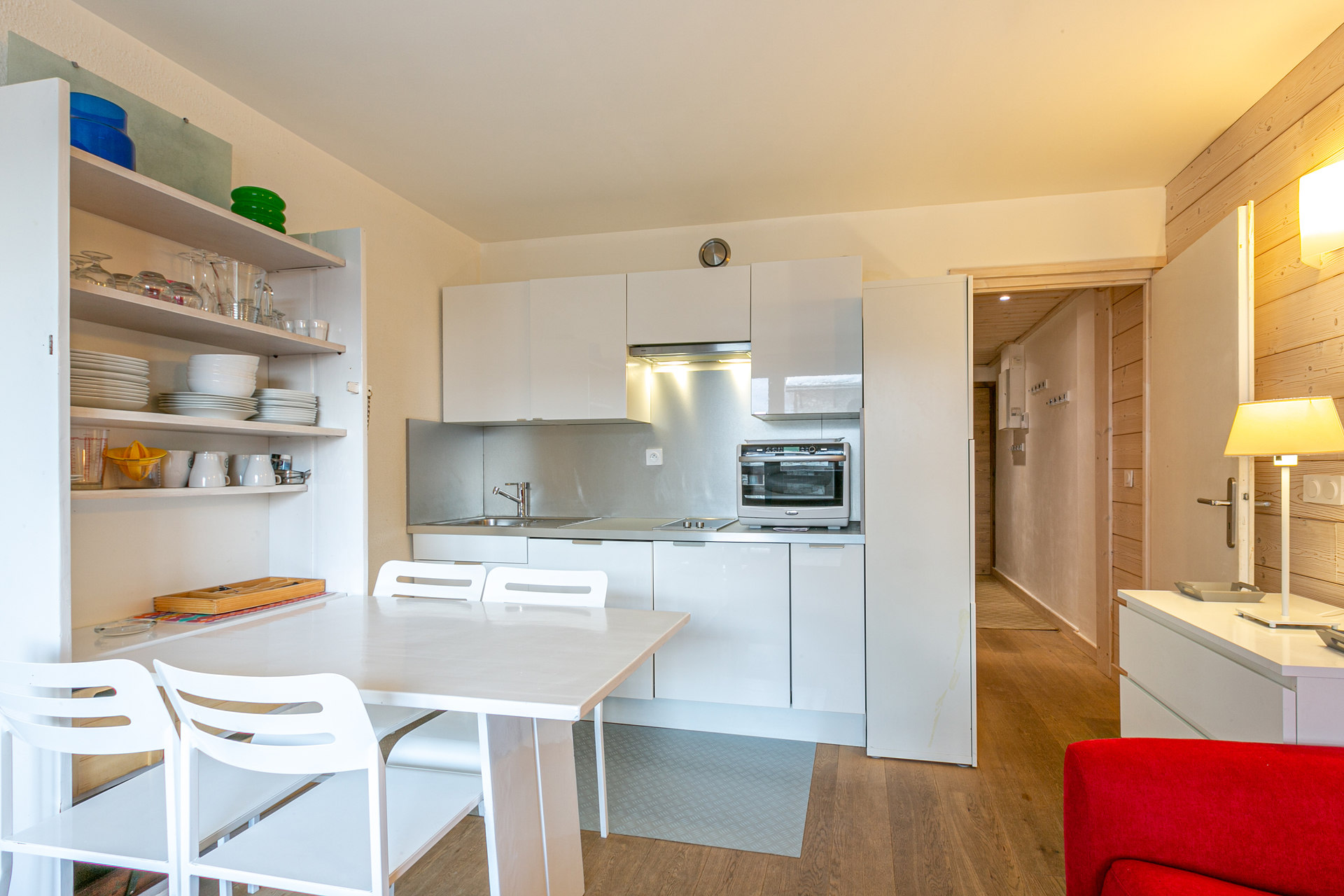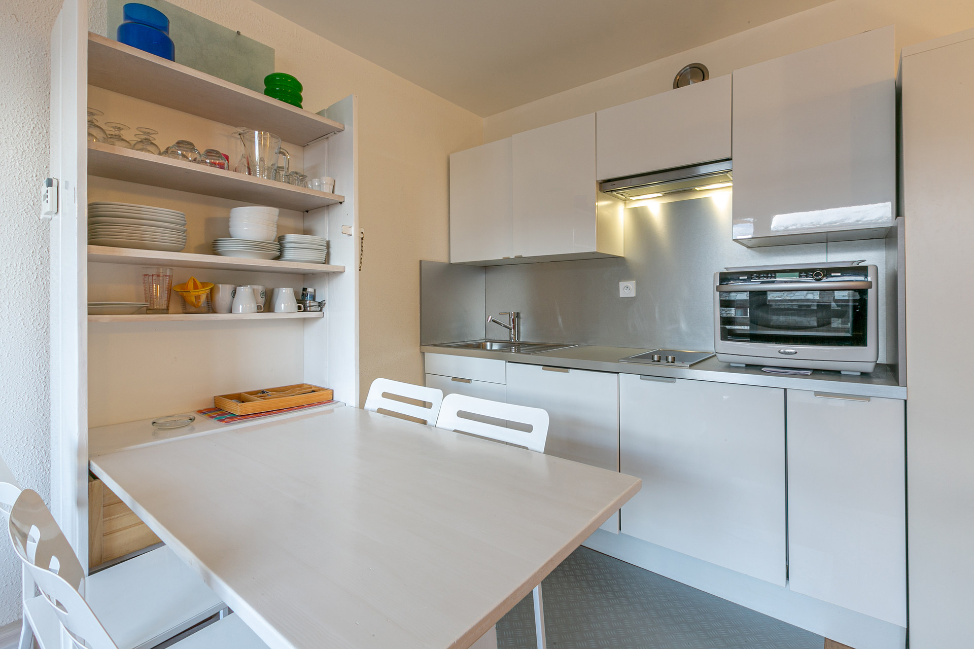 Equipée d'un lave-vaisselle, combi four/micro-onde, plaque vitrocéramique, réfrigerateur