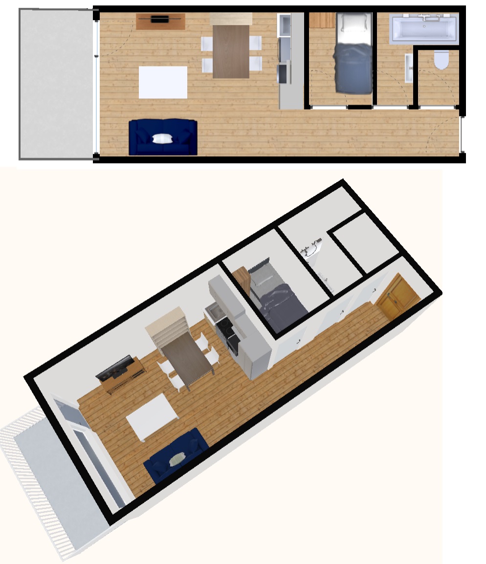 Studio avec cabine de 32m2 pouvant accueillir 4 personnes.