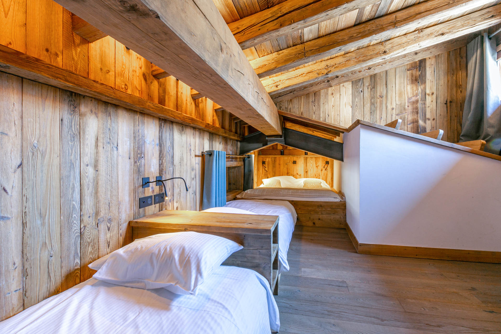 2 lits simples 90x200 cm, 1 lit double encastré en sous-pente 160x200 cm