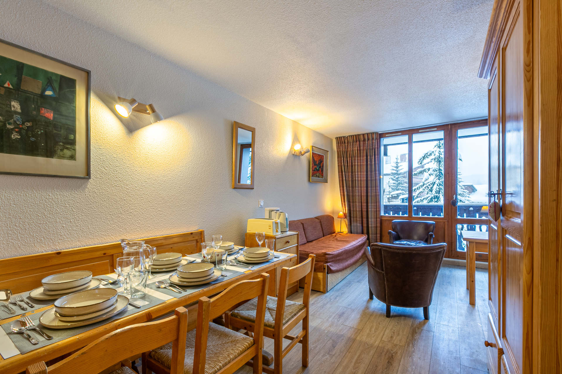 Copropriété skis aux pieds à quelques pas du vieux village. A 10 min de toutes commodités (commerces, restaurants, location de skis, cours de skis…).