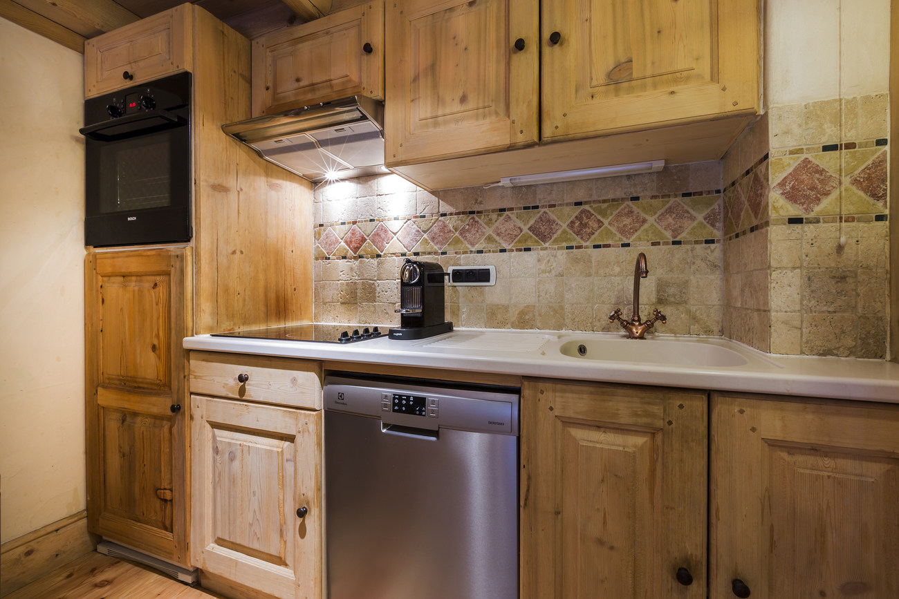 Equipée d'un lave-vaisselle, four micro-ondes, four, hotte aspirante, plaque vitrocéramique, grand réfrigérateur avec congélateur, lave-linge avec sèche-linge.