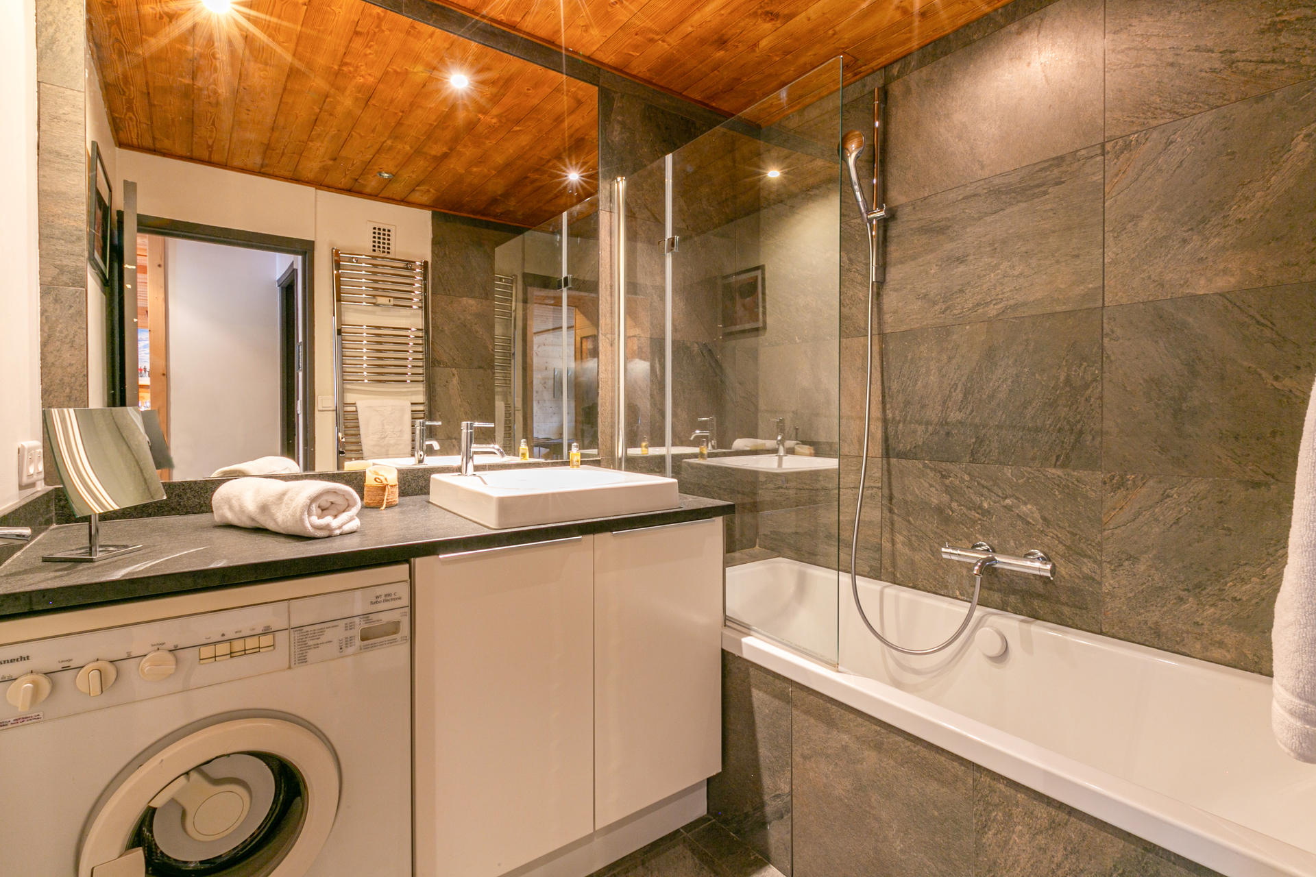 Salle de bains avec Lave-linge séchant