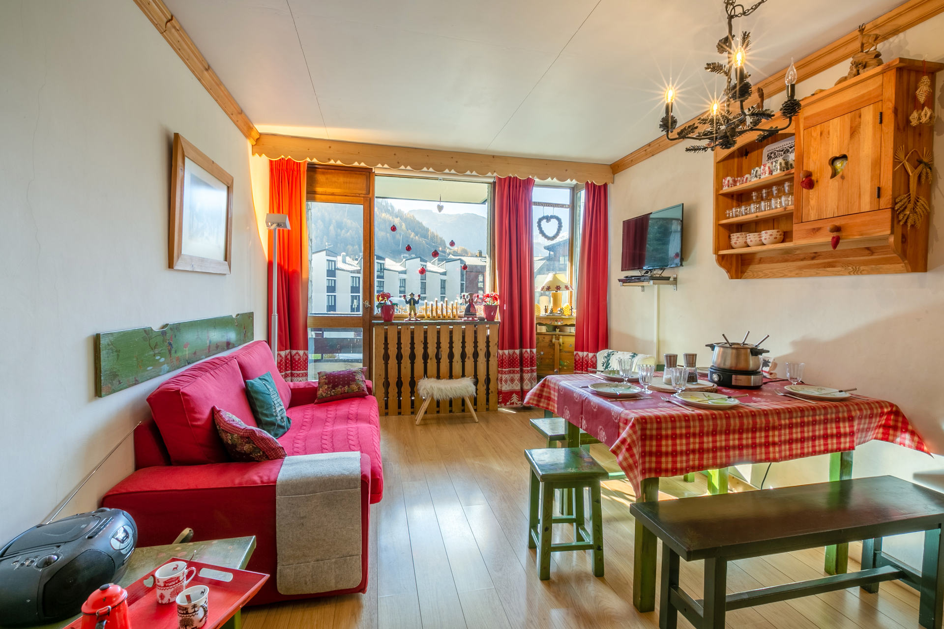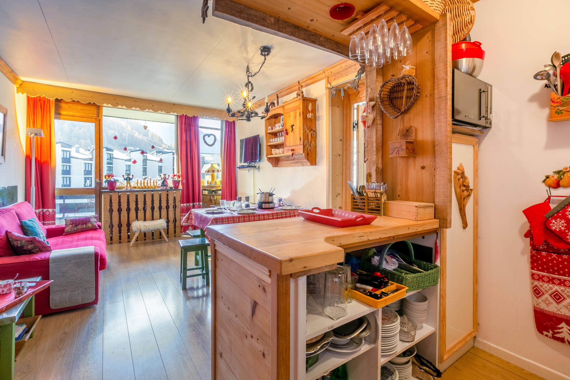 Guirlande en bois contre la fenêtre