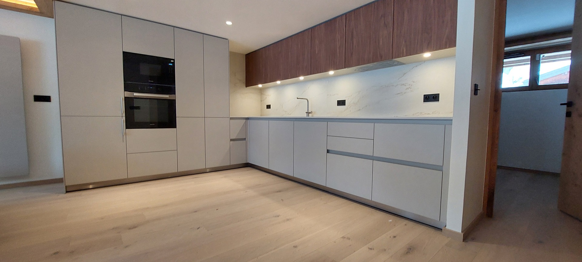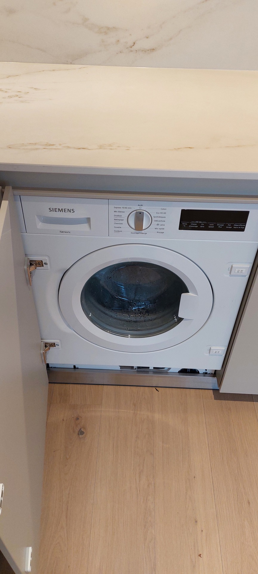 Equipée d'un lave-vaisselle, four, plaque à induction, hotte aspirante, four micro-ondes, réfrigérateur avec congélateur, lave-linge