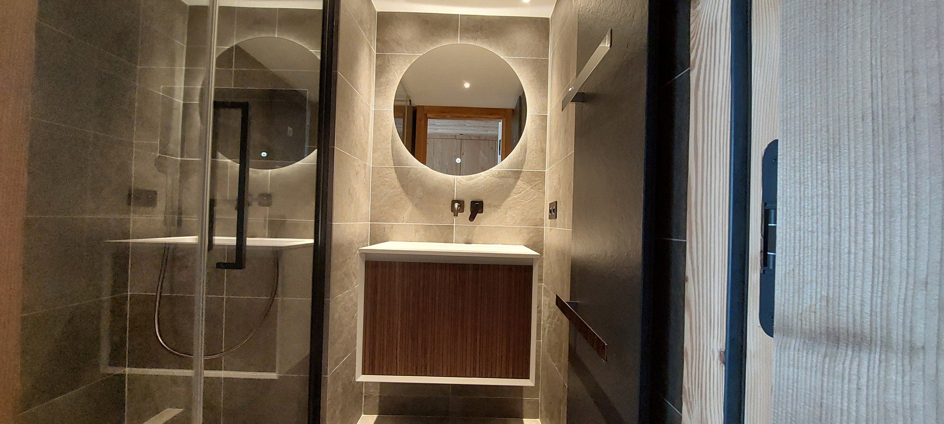 Résidence avec ascenseur, local à skis chauffé et chauffe-chaussures, local poubelle au rez-de-chaussée du bâtiment.