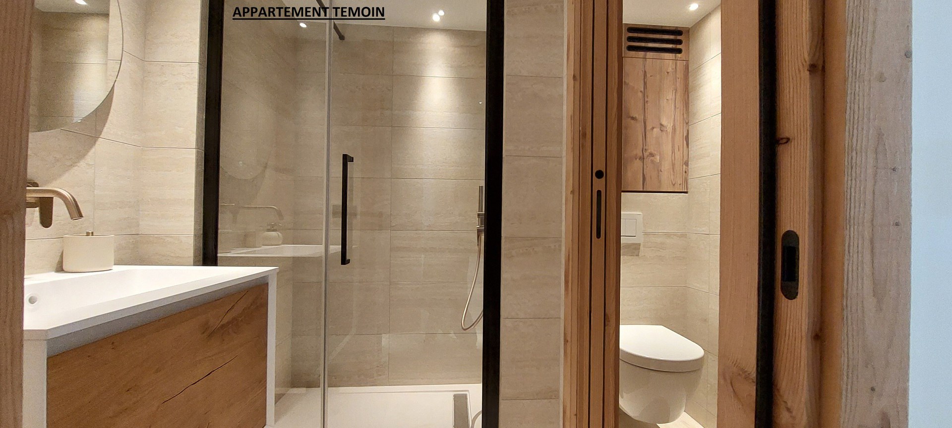 Résidence avec ascenseur, local à skis chauffé et chauffe-chaussures, local poubelle au rez-de-chaussée du bâtiment.