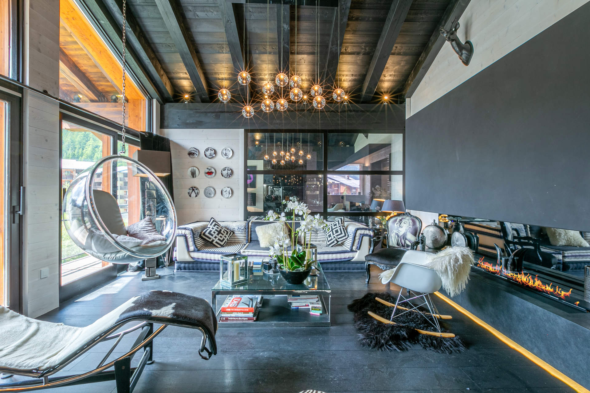 Grand salon avec cheminée led décorative - Enceinte Bose