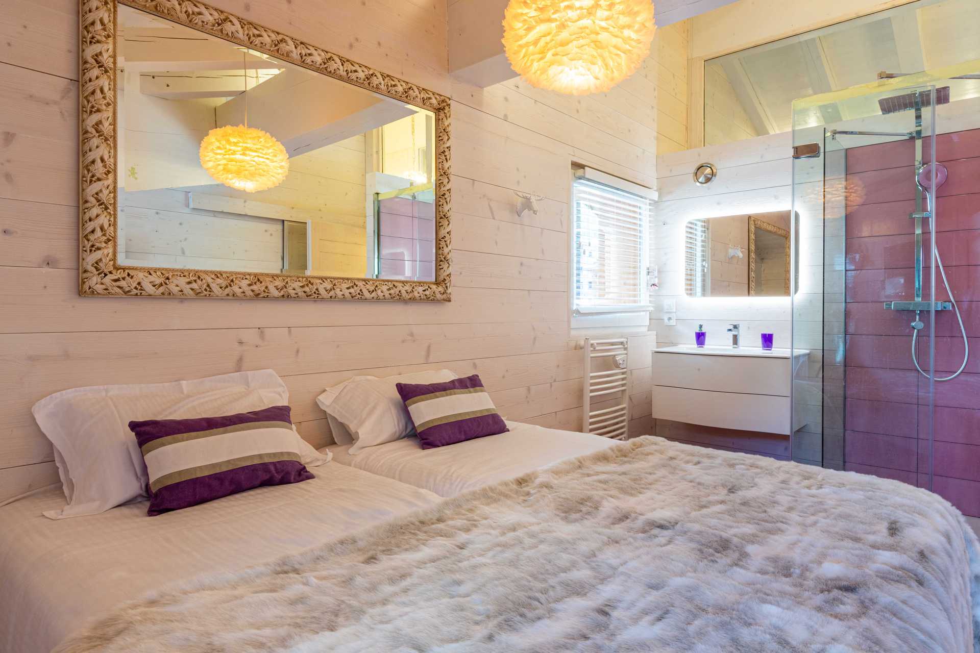 2 Lits simples 90x200 cm + Salle de douche ouverte