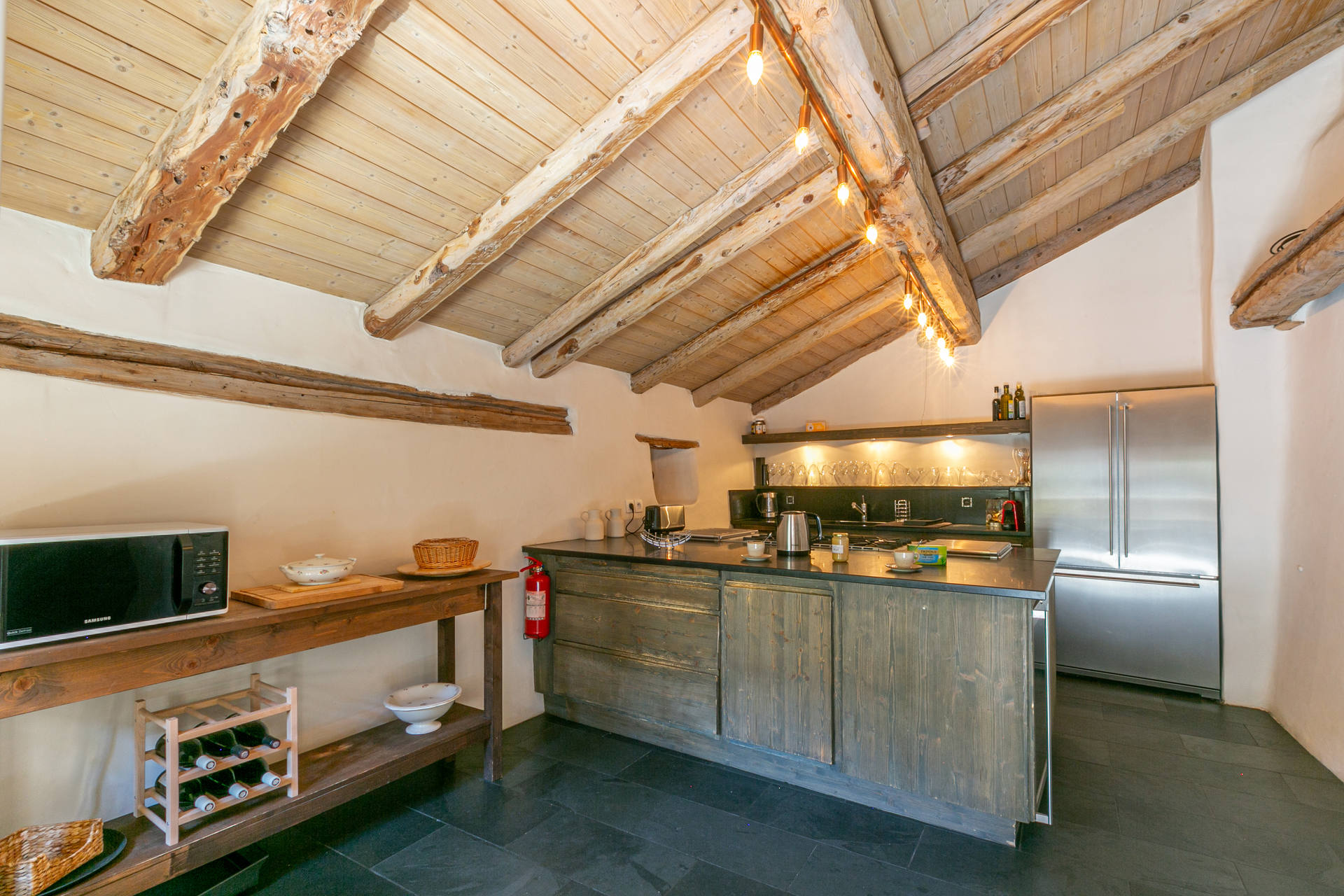 Equipée d'un four, lave-vaisselle, four micro-ondes, grand réfrigérateur, congélateur, hotte aspirante, plaque cuisson gaz, plaque grillade, cave à vin
