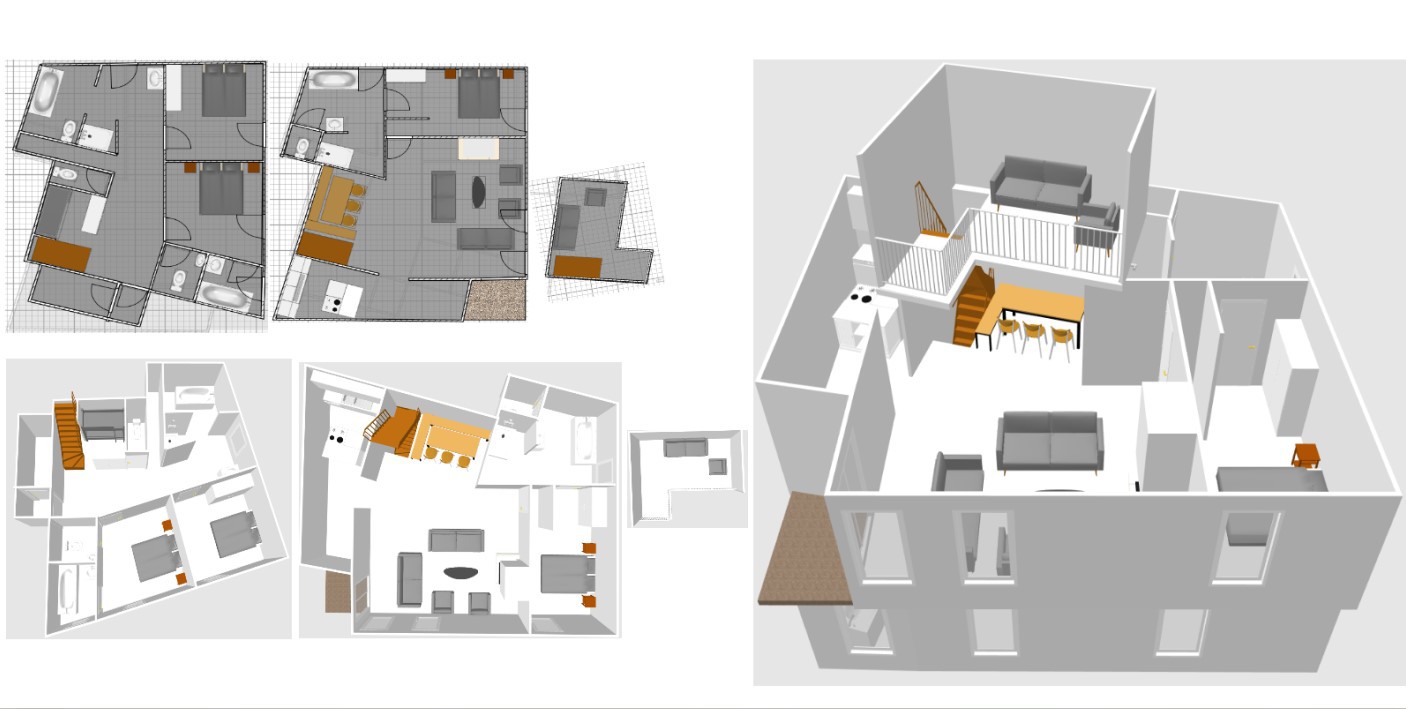 1 Lit double 160x200 cm avec télévision + Salle de bain/wc séparés
