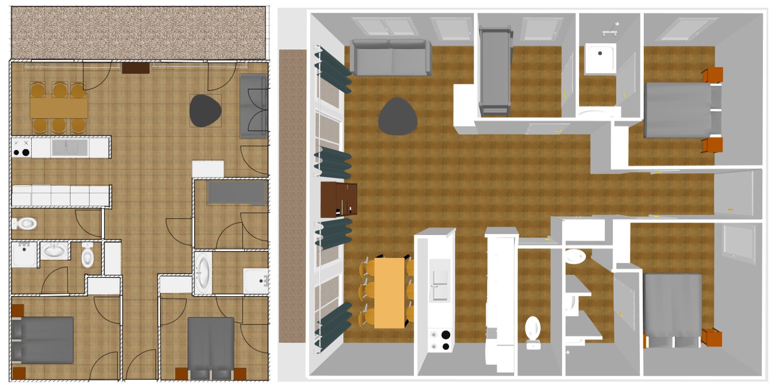 3 pièces avec cabine de standing de 75m2 pouvant accueillir 6 personnes