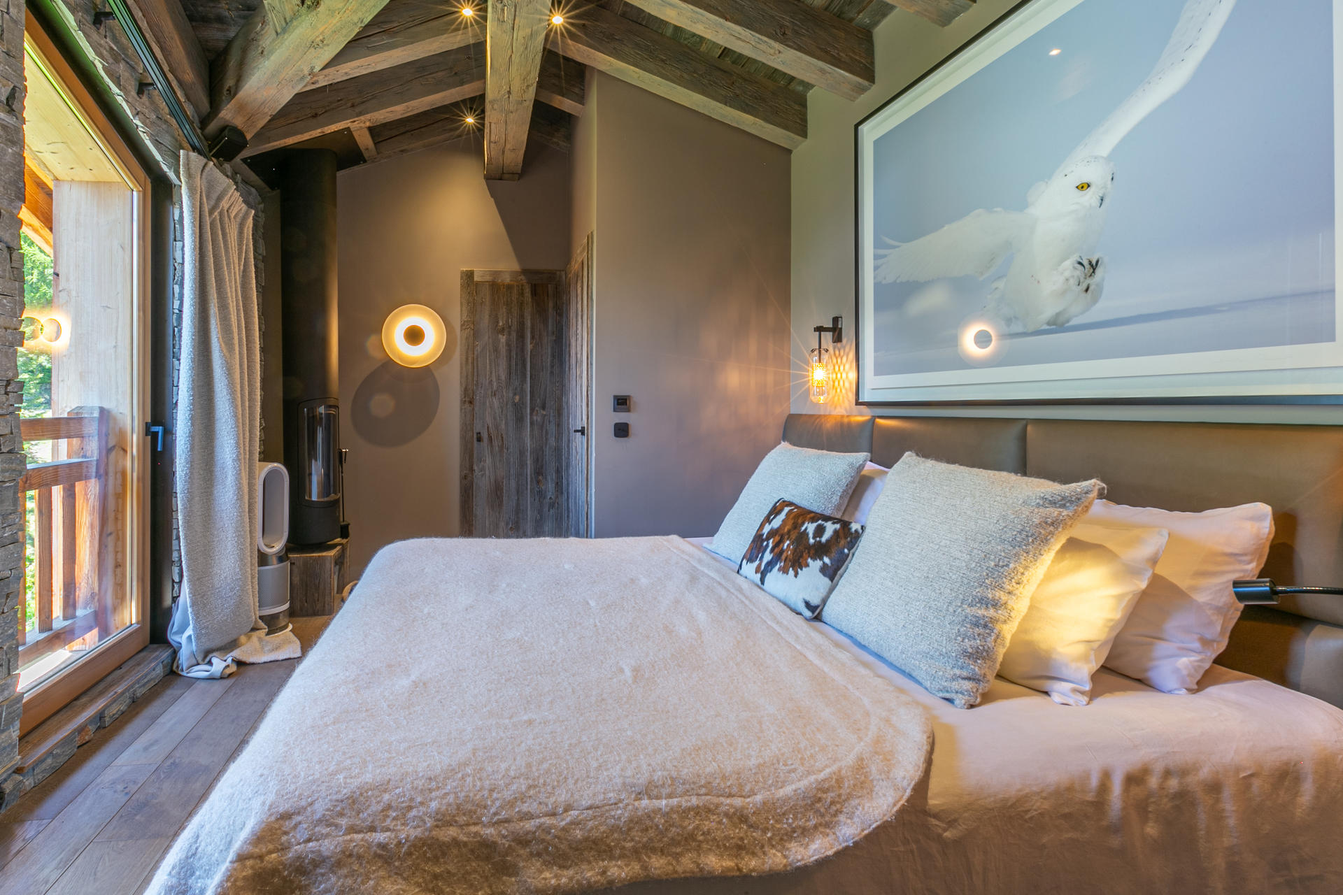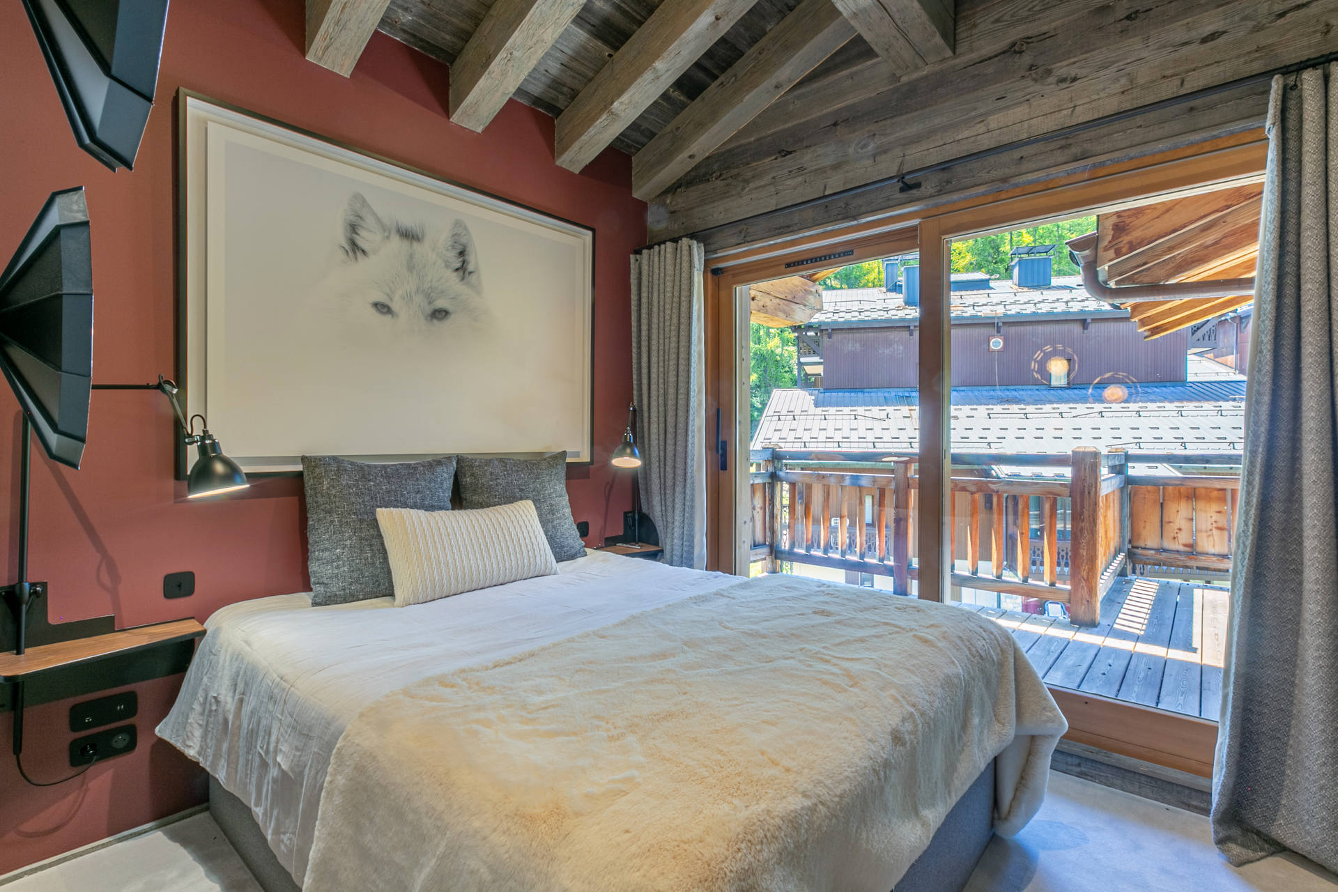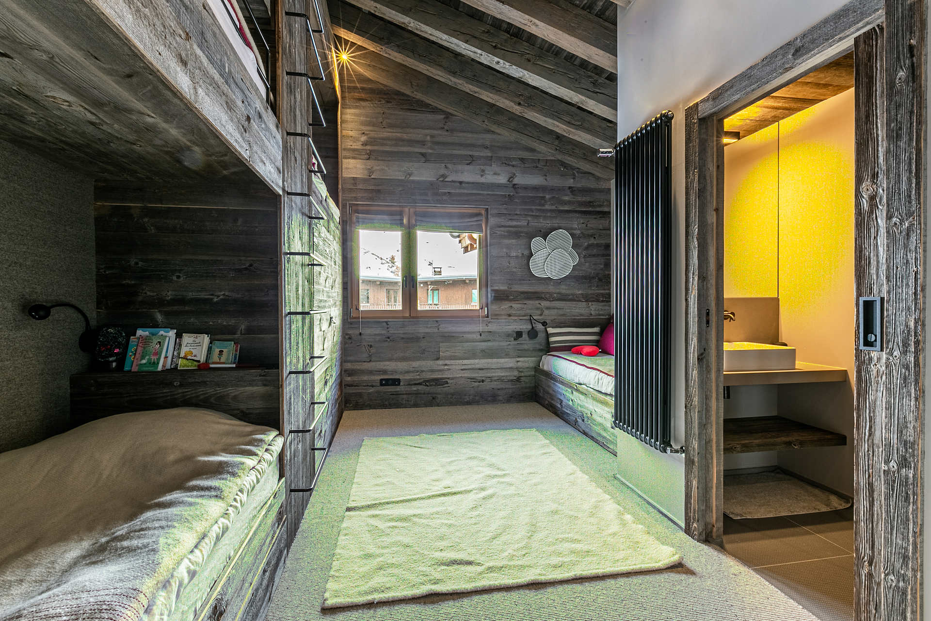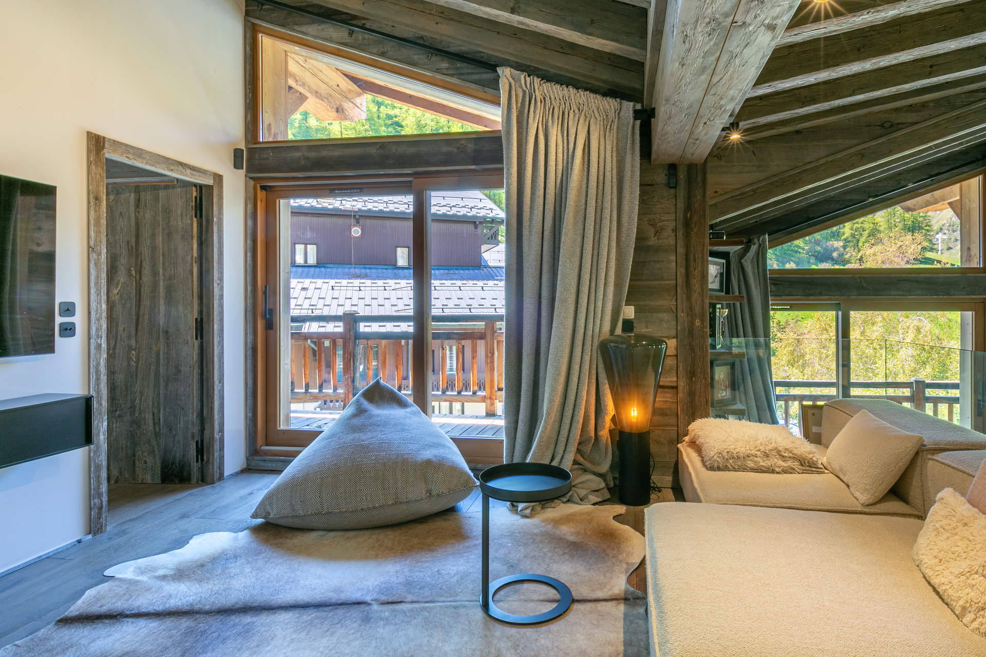 Cuisine ouverte Equipée d'un lave-vaisselle, four, plaque induction, hotte aspirante, four micro-ondes, réfrigérateur avec congélateur Petit électroménager: cafetière nespresso, bouilloire électrique, grille-pain, appareil à fondue Séjour Grand séjour avec belle hauteur sous plafond doté d'une cheminée (bois inclus) Espace salon télévision Espace repas Balcon filant sud - sud/ouest Chambre 1 Maitre Sud/Est 1 lit double 160x200 cm avec cheminée + Salle de douche/bain/lavabo double attenante - wc séparés Chambre 2 Sud avec balcon 2 Lits simples 90x200 cm + Salle de douche/wc attenante Chambre 3 Sud avec balcon 1 Lit double 160x200 cm avec télévision + Salle de douche/wc attenante Chambre 4 Nord 3 Lits superposés 90x200 cm + 1 lit simple + Salle de douche attenante Sanitaires indépendants 1 Wc + lavabo