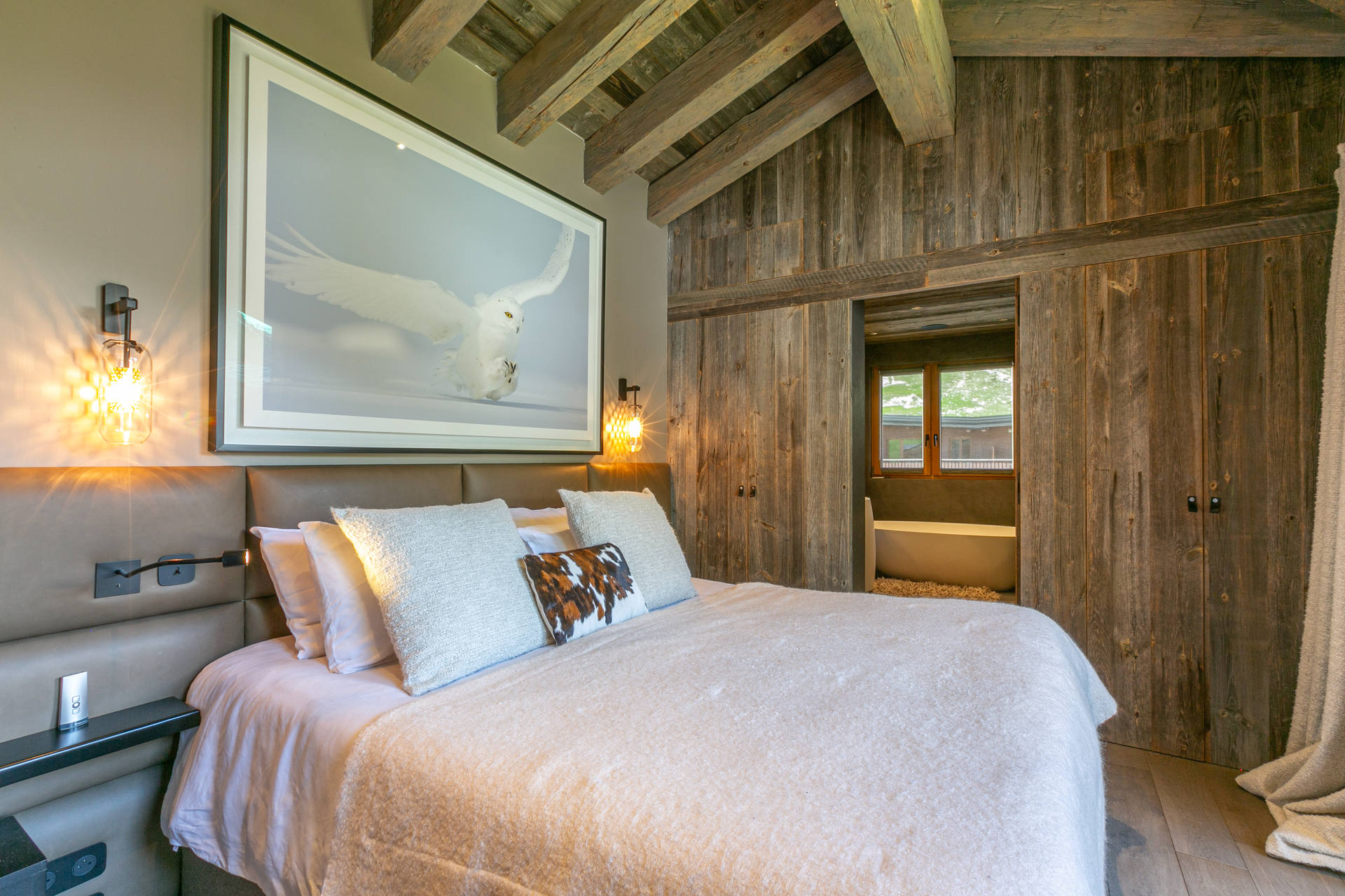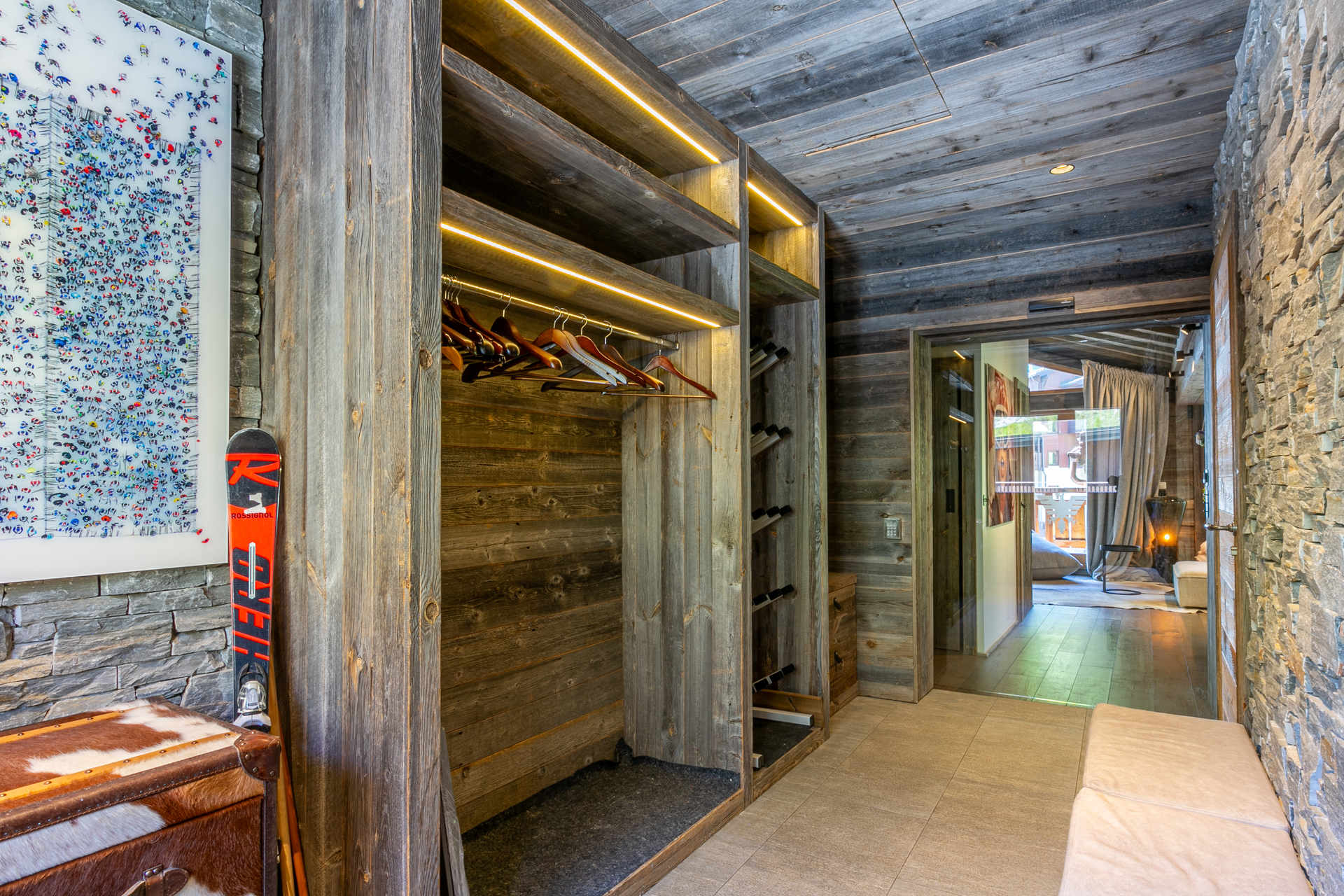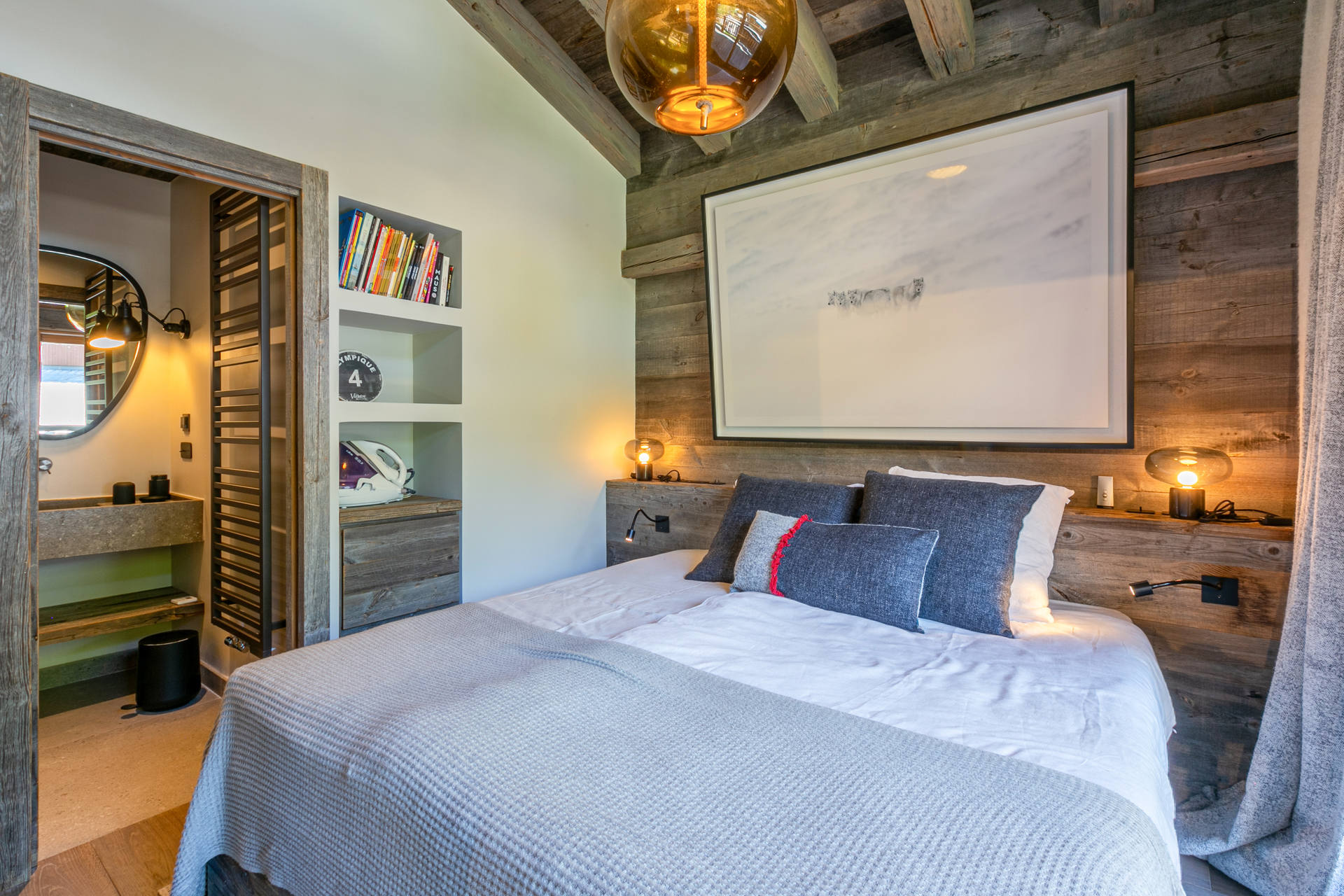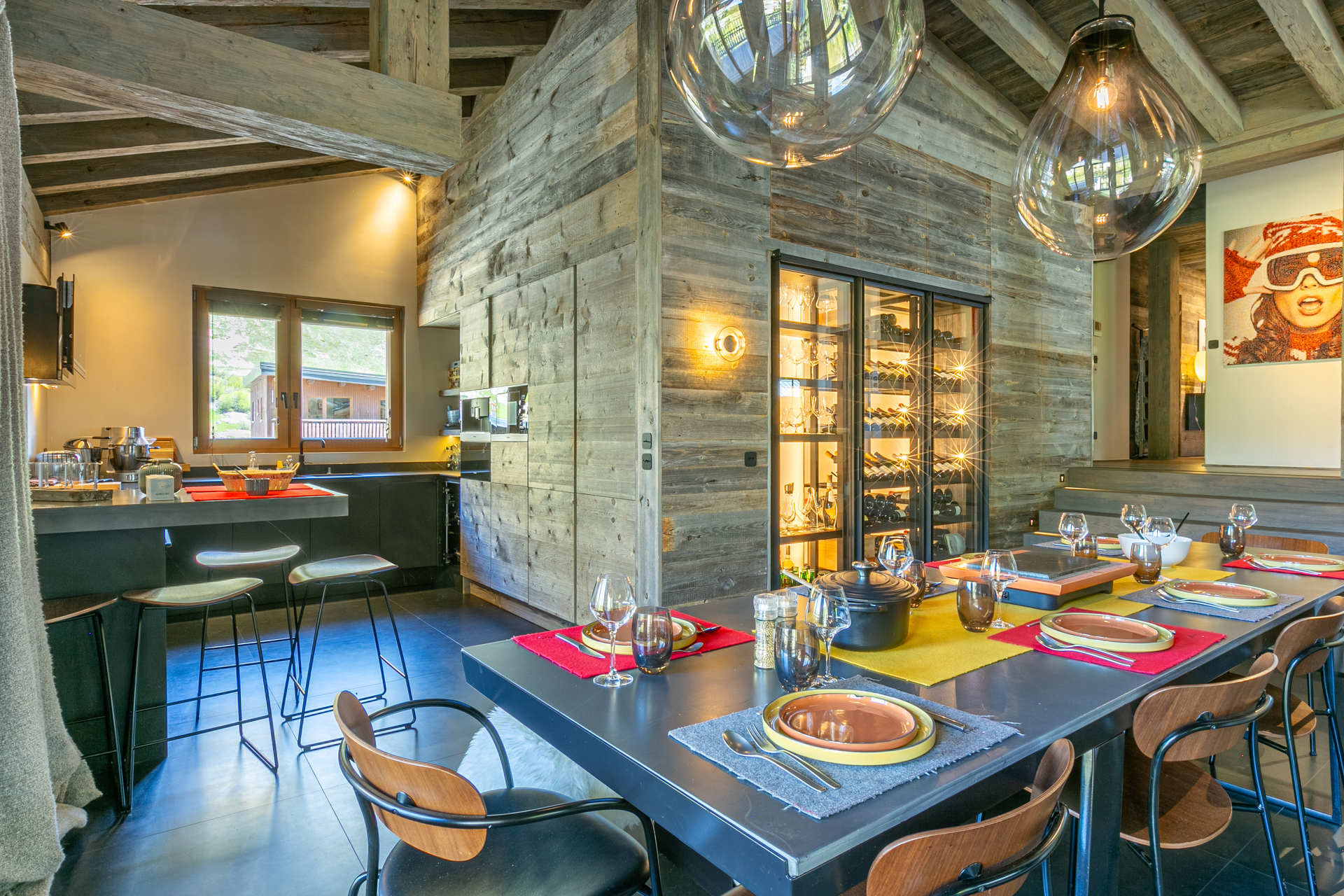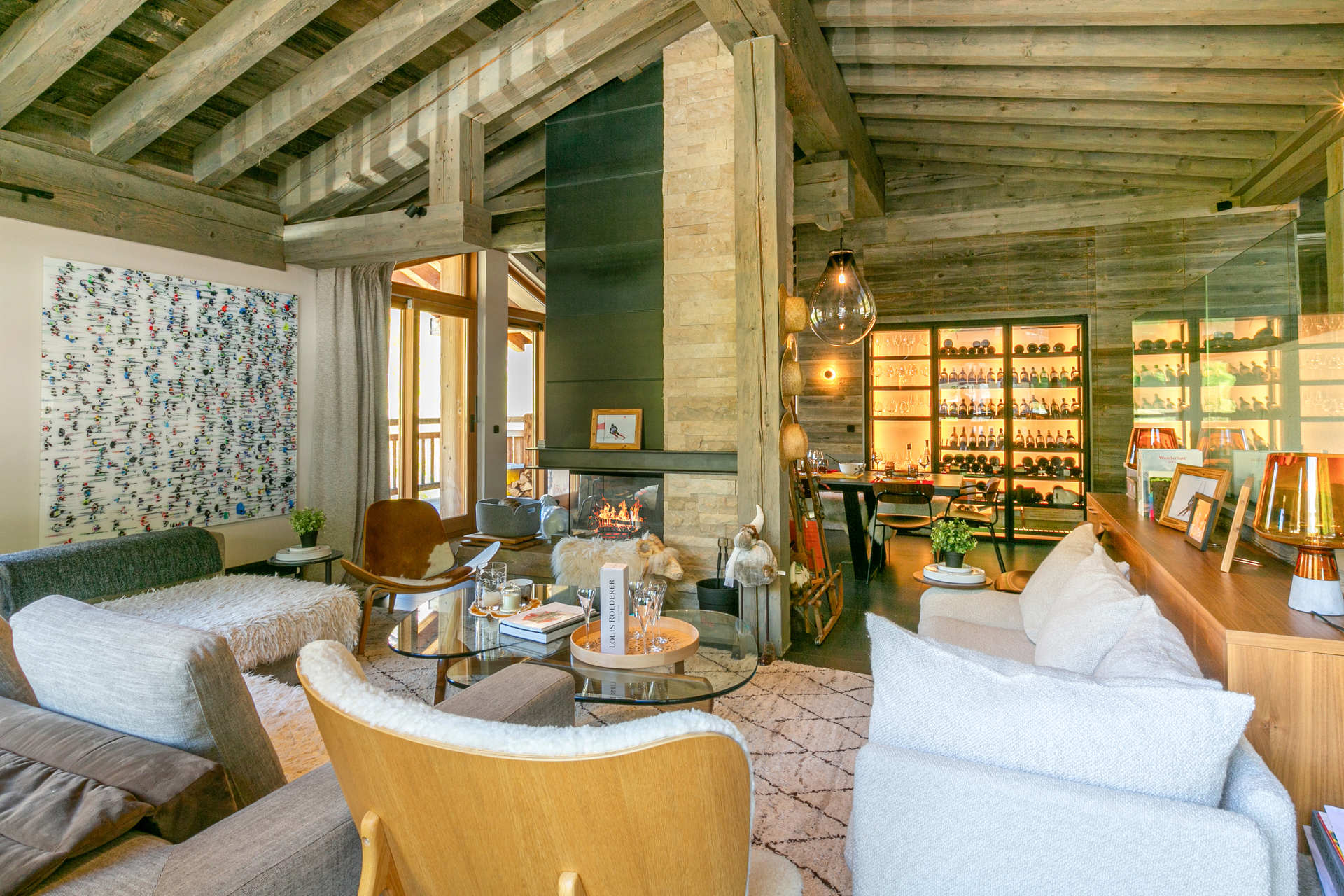 Cuisine ouverte Equipée d'un lave-vaisselle, four, plaque induction, hotte aspirante, four micro-ondes, réfrigérateur avec congélateur Petit électroménager: cafetière nespresso, bouilloire électrique, grille-pain, appareil à fondue Séjour Grand séjour avec belle hauteur sous plafond doté d'une cheminée (bois inclus) Espace salon télévision Espace repas Balcon filant sud - sud/ouest Chambre 1 Maitre Sud/Est 1 lit double 160x200 cm avec cheminée + Salle de douche/bain/lavabo double attenante - wc séparés Chambre 2 Sud avec balcon 2 Lits simples 90x200 cm + Salle de douche/wc attenante Chambre 3 Sud avec balcon 1 Lit double 160x200 cm avec télévision + Salle de douche/wc attenante Chambre 4 Nord 3 Lits superposés 90x200 cm + 1 lit simple + Salle de douche attenante Sanitaires indépendants 1 Wc + lavabo
