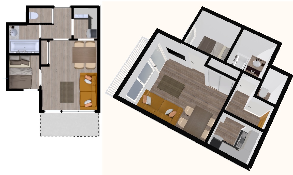 Appartement 2 pièces de 20 m2 pouvant accueillir 4 personnes.