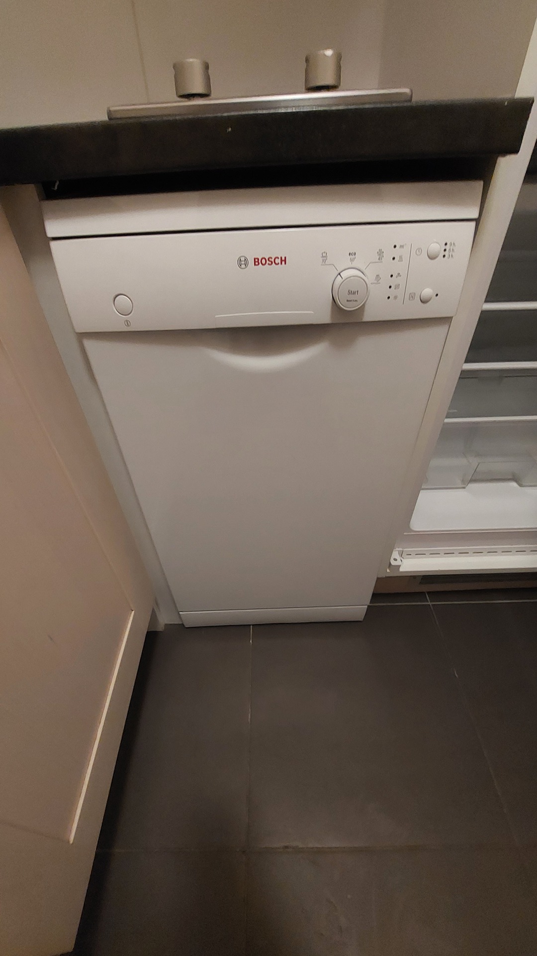 Equipée d'un four, lave-vaisselle, plaque vitrocéramique, réfrigérateur et d'une hotte aspirante.
