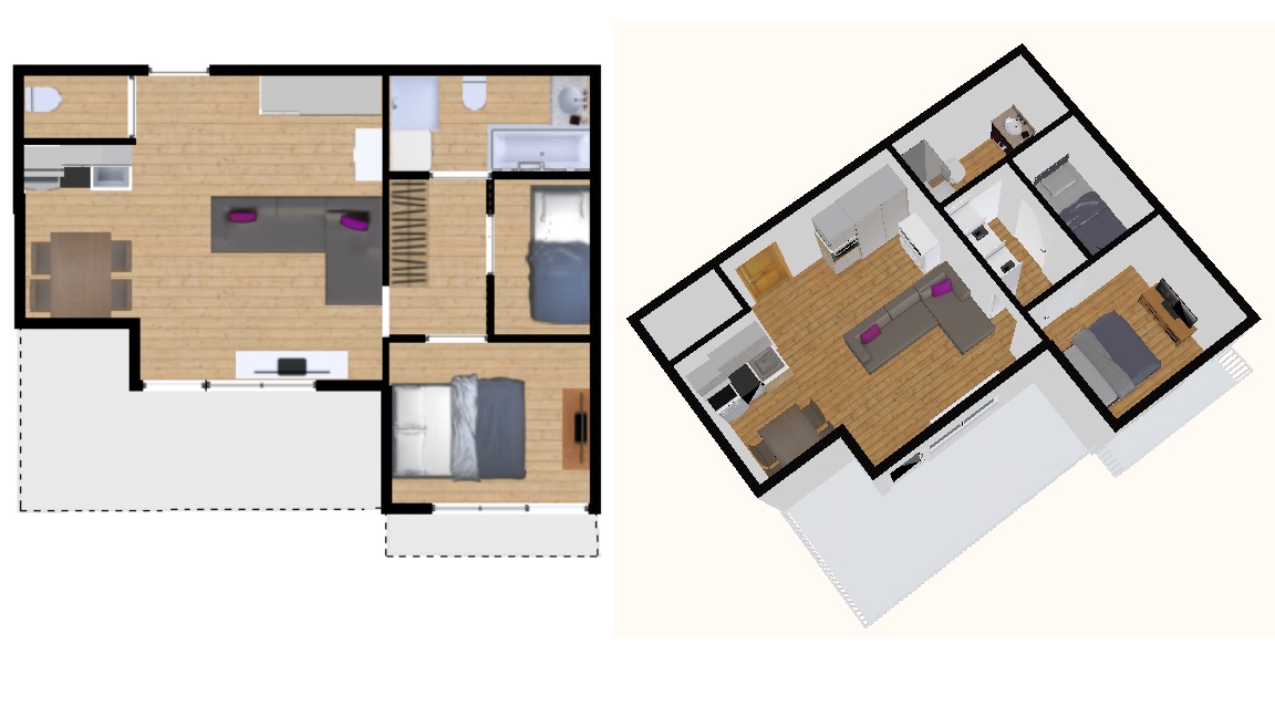 Appartement 2 pièces cabine de 39 m2 pouvant accueillir 4 personnes.