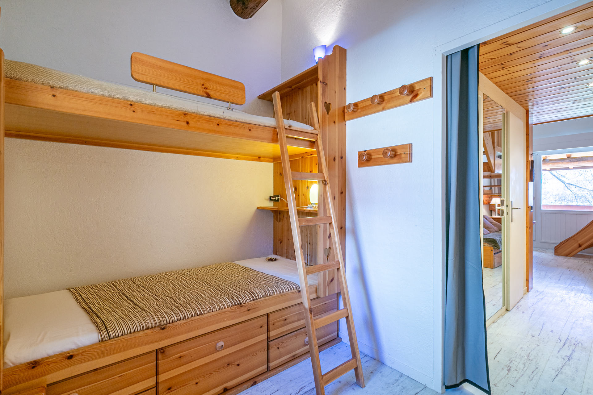 Coin montagne à l'entrée 2 lits superposés 80x190 cm (séparés par 1 rideau)