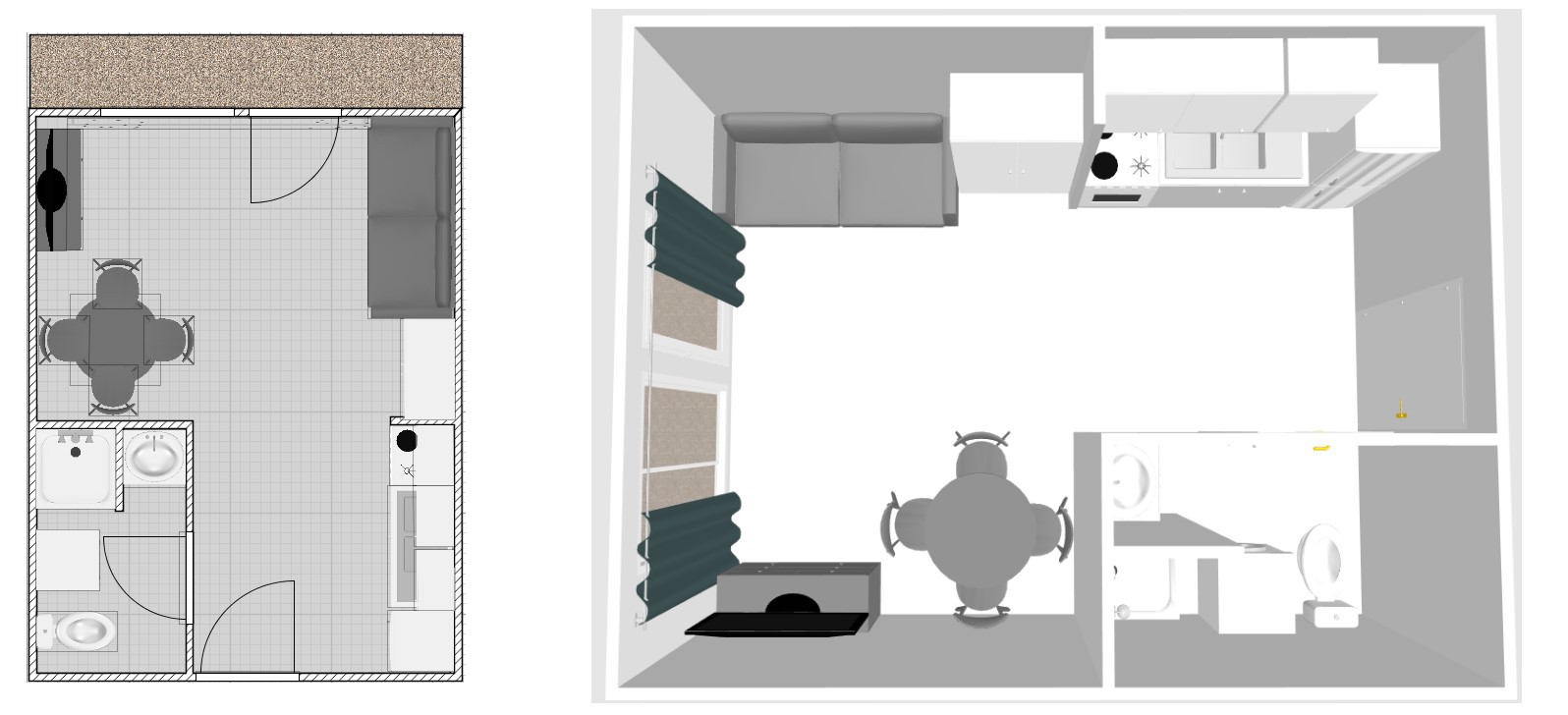 Equipée d'un lave-vaisselle, combi four/micro-ondes, plaque vitroceramique, réfrigérateur avec compartiment congélation