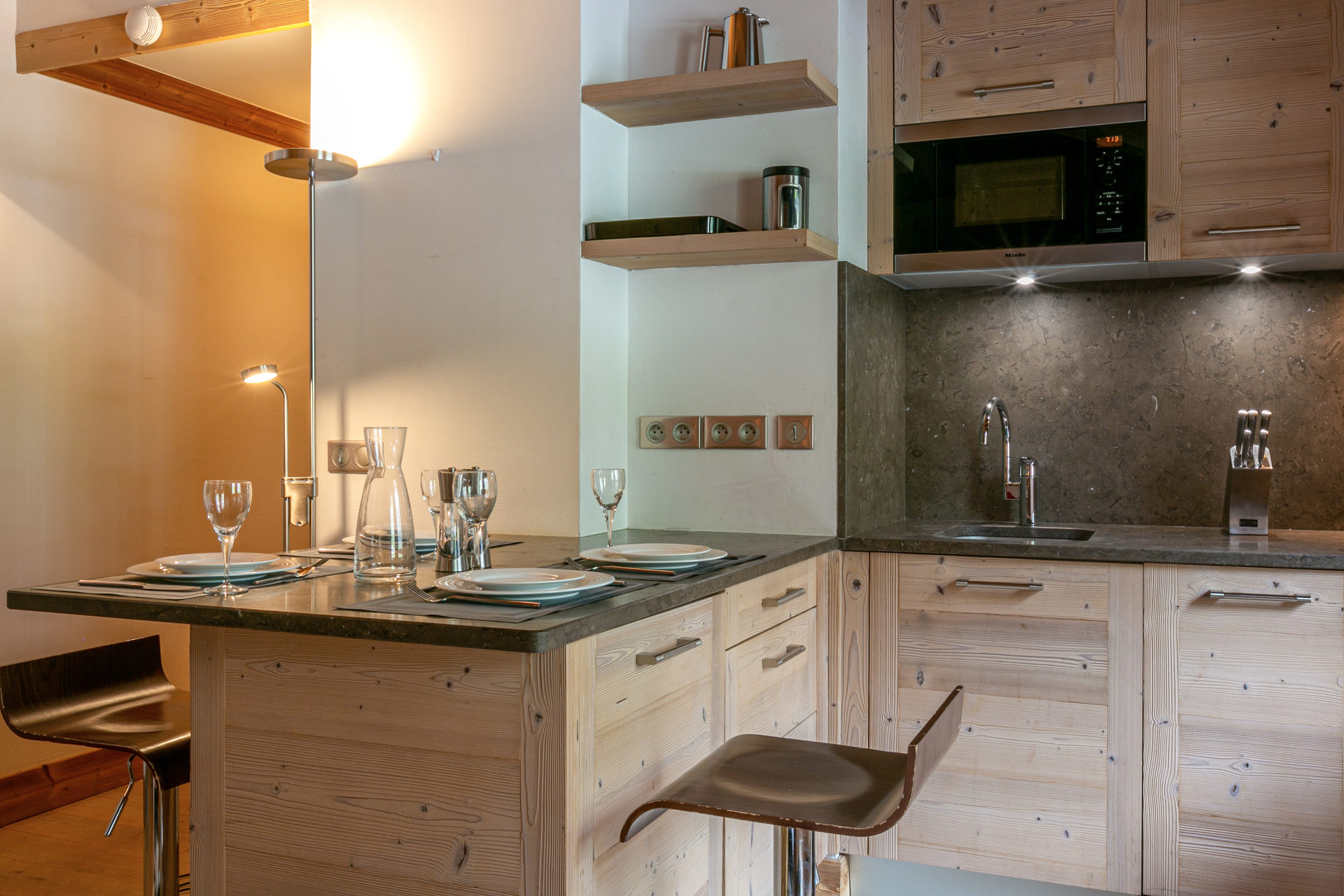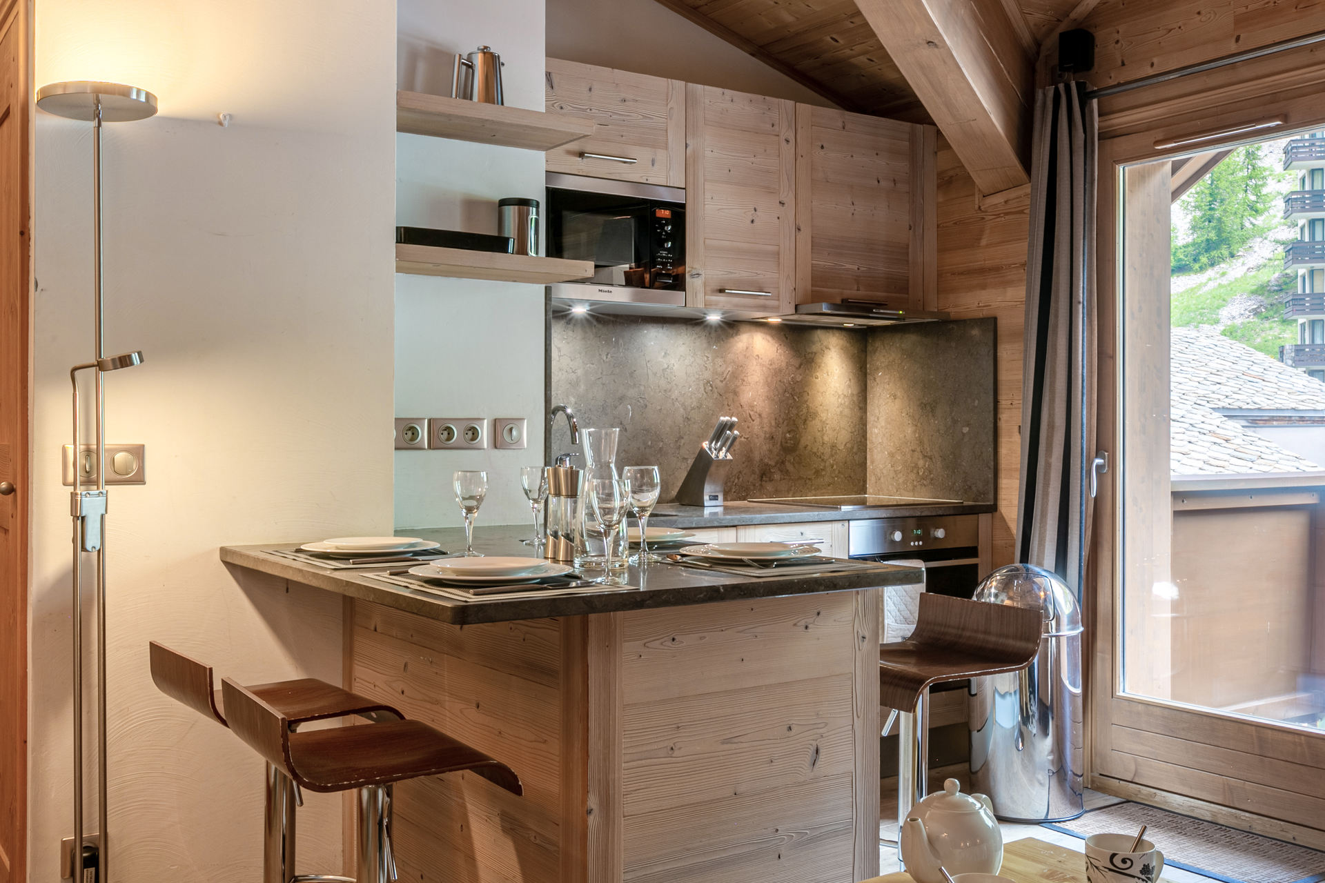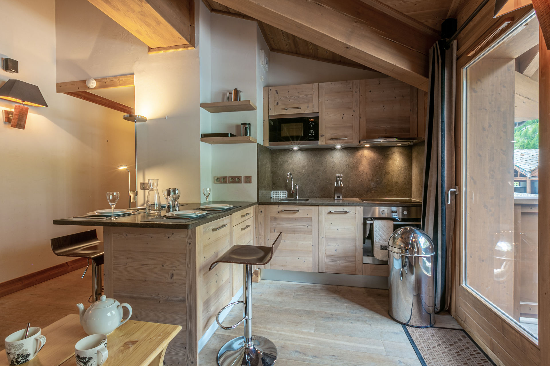 Equipée d'un lave-vaisselle, four, four micro-ondes, hotte aspirante, plaque vitrocéramique et lave-linge avec sèche-linge