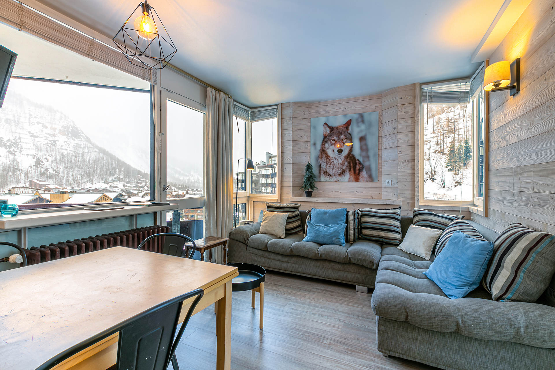 3 pièces de 46 m2 pouvant accueillir 6 personnes Au 4ème étage de la résidence avec un balcon exposé Ouest avec un très beau panorama sur le village et la face de Bellevarde
