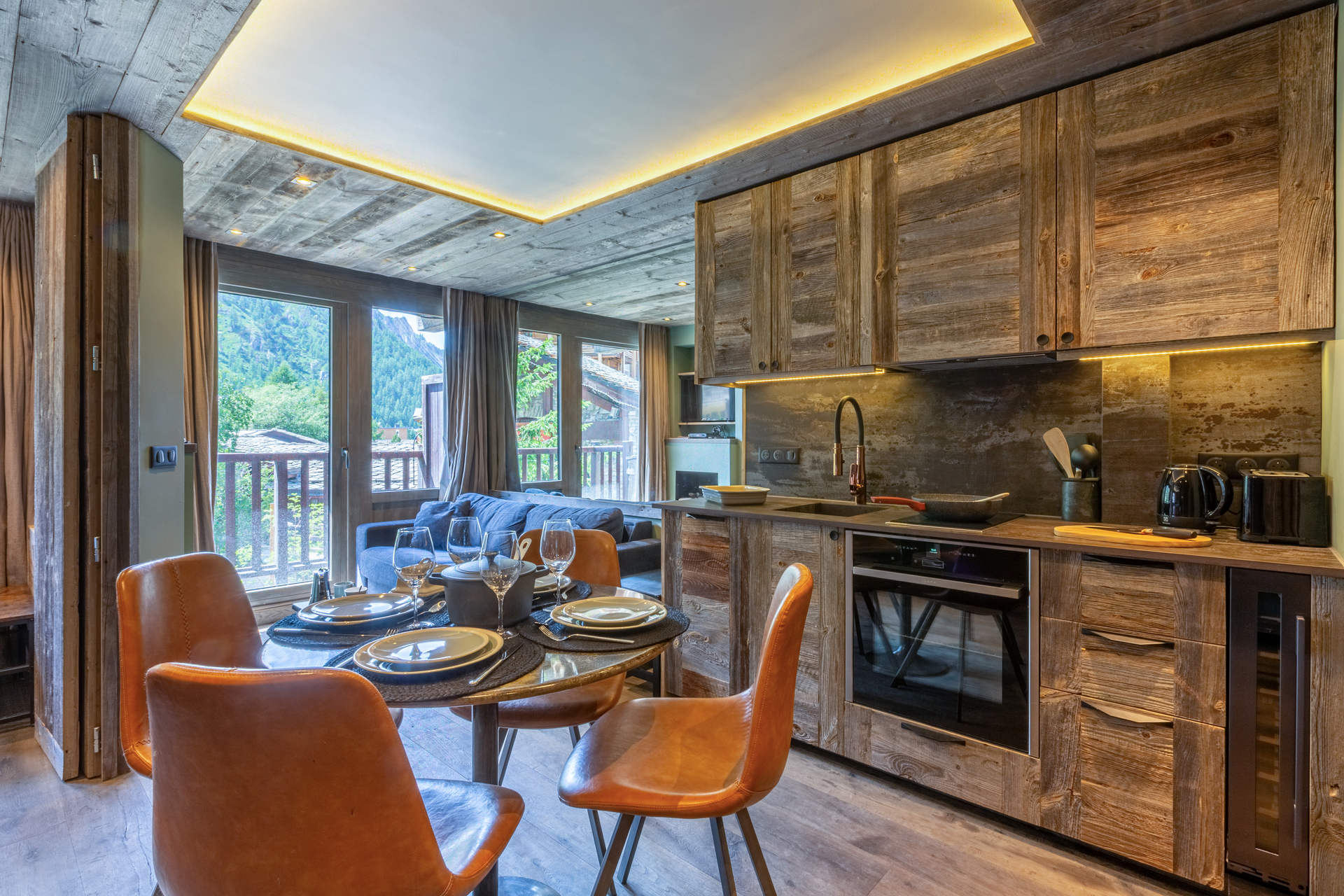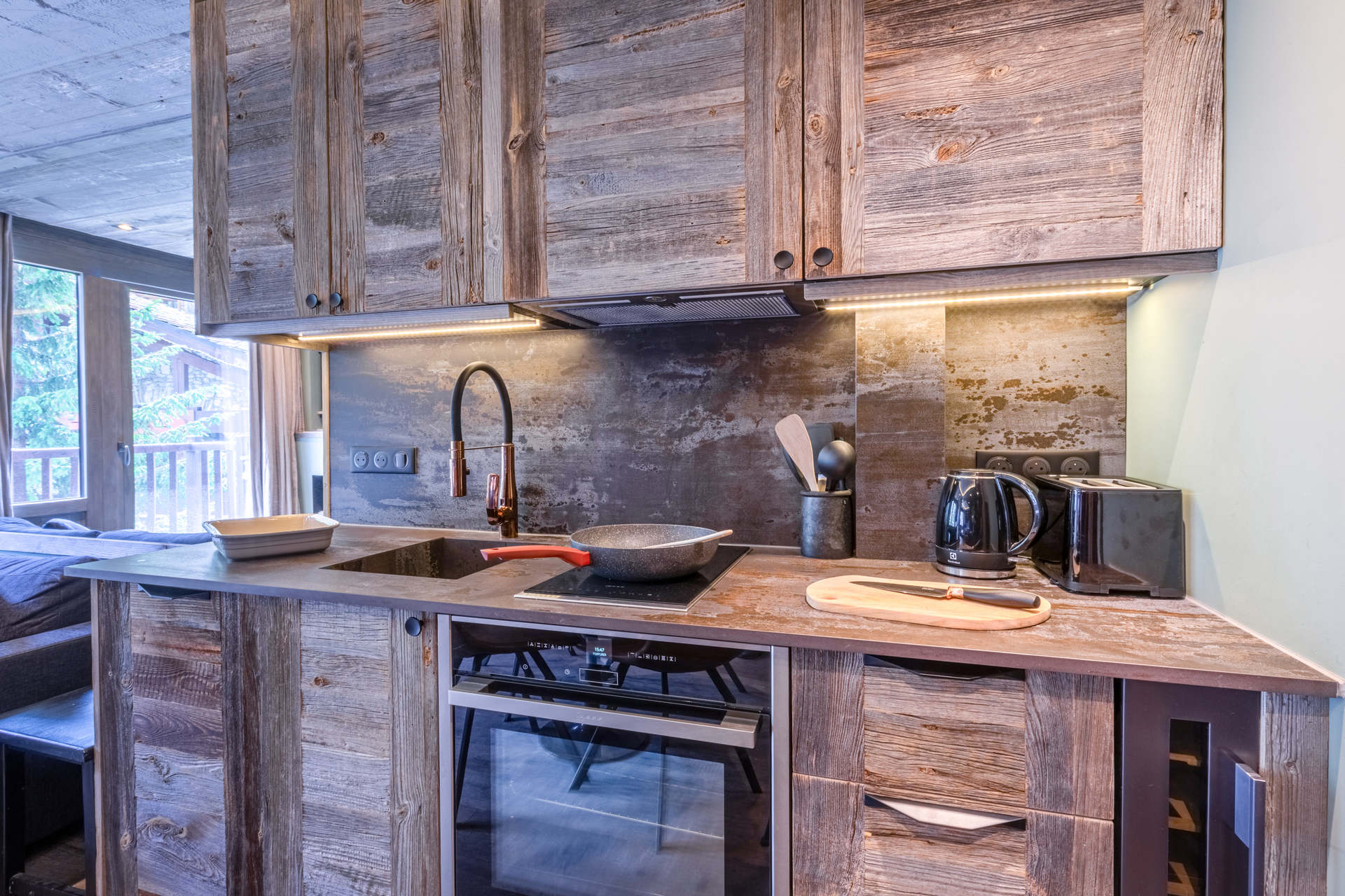 Equipée d'un lave-vaisselle, four, four micro-ondes, hotte aspirante, plaque vitrocéramique, réfrigérateur avec congélateur, cave à vin