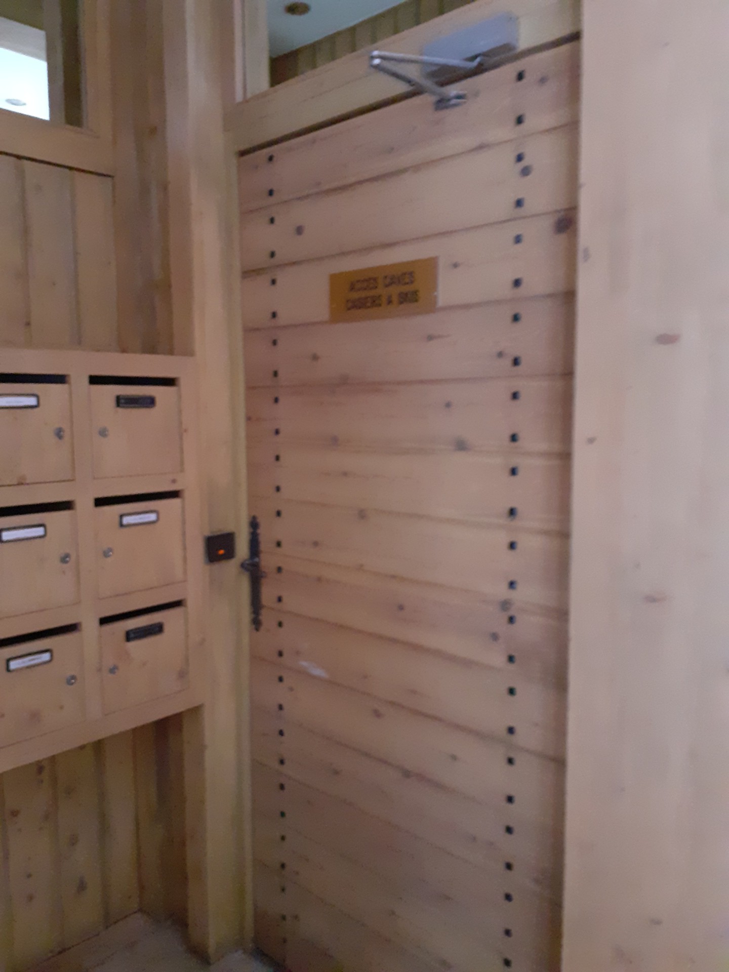 Casiers à skis et local poubelle au rez-de-chaussée du bâtiment.